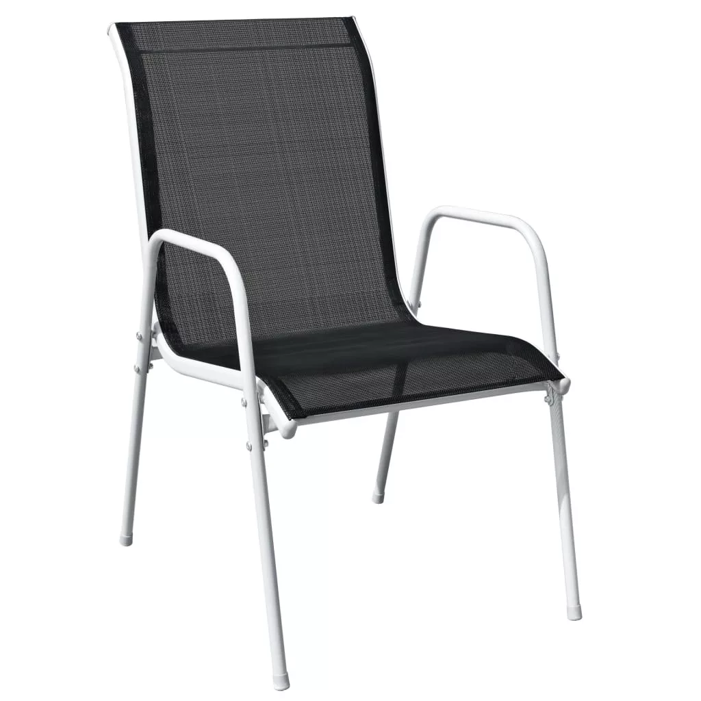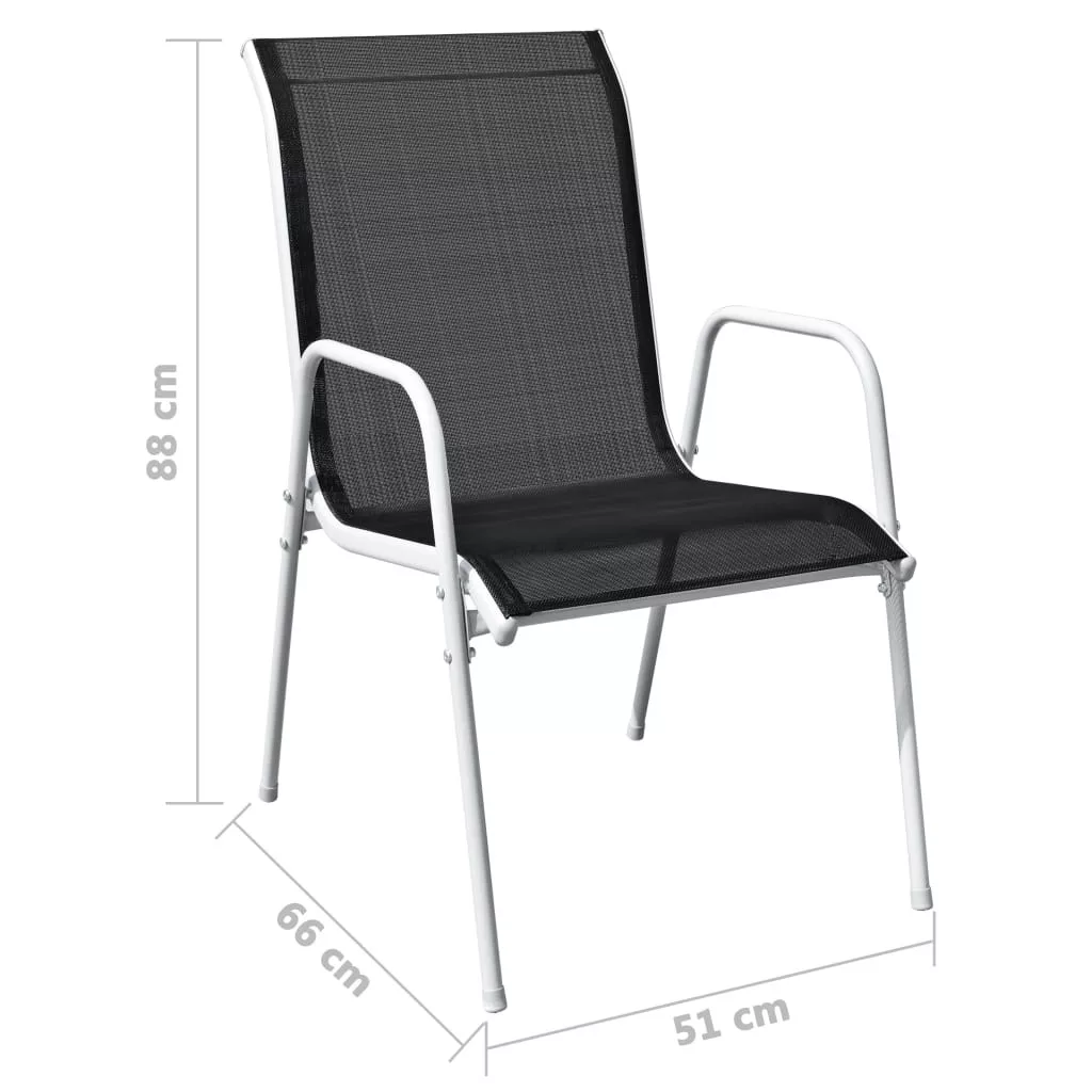 Ez a kerti étkezőgarnitúra porszórt bevonatú acélvázzal rendelkezik, aminek köszönhetően mind az asztal, mind perdig a székek stabilak és tartósak. A kényelmes étkezőszékek szilárd és könnyen tisztítható textilén huzattal rendelkeznek. Használaton kívül a helytakarékos tárolás érdekében egymásba rakhatóak.