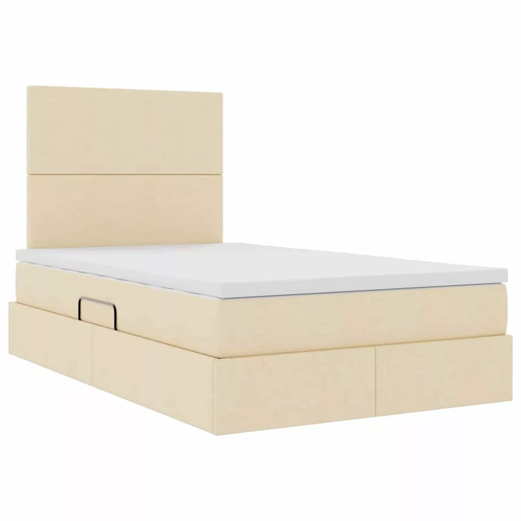 vidaXL Ágy tárolóval és LED lámpával Krém 120 x 190 cm Poliészter