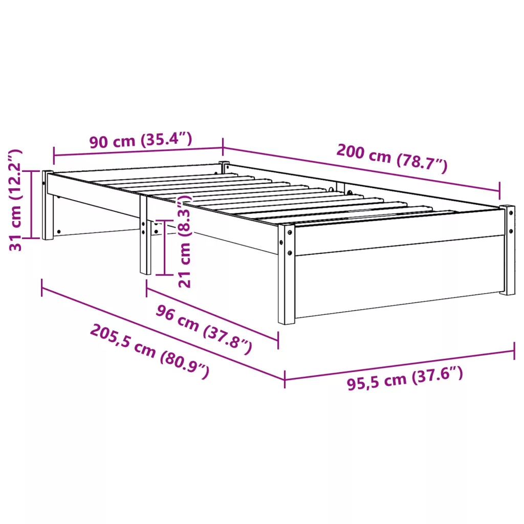 vidaXL Ágykeret Tömör fenyő