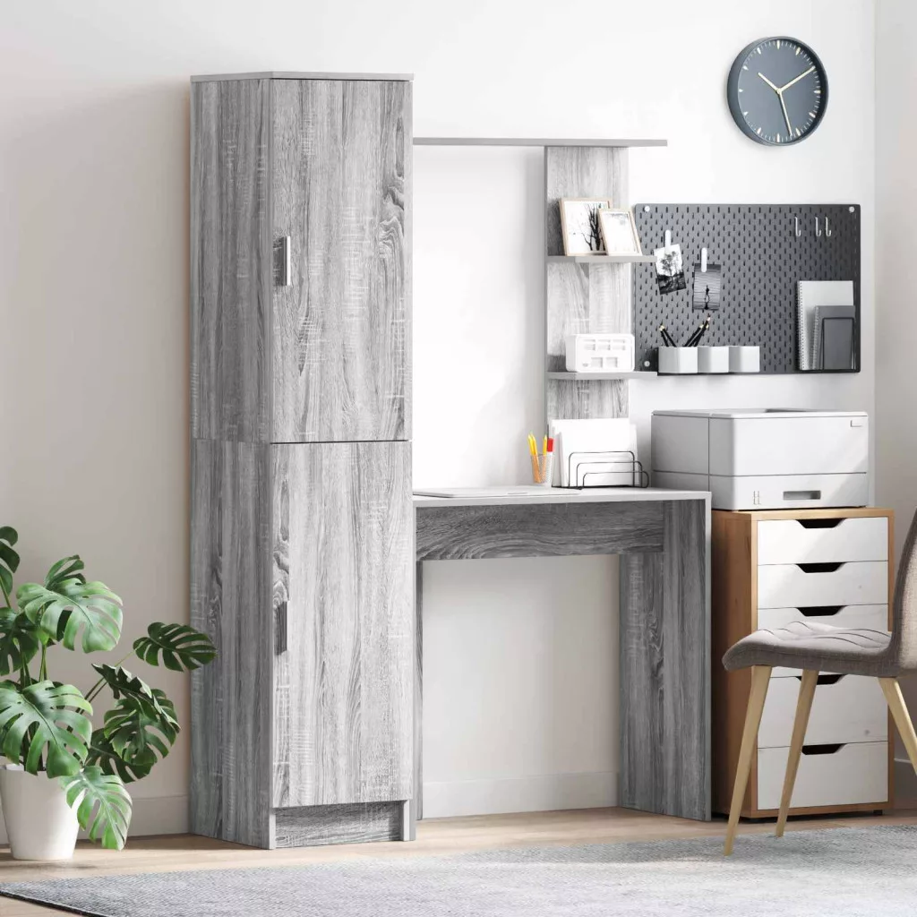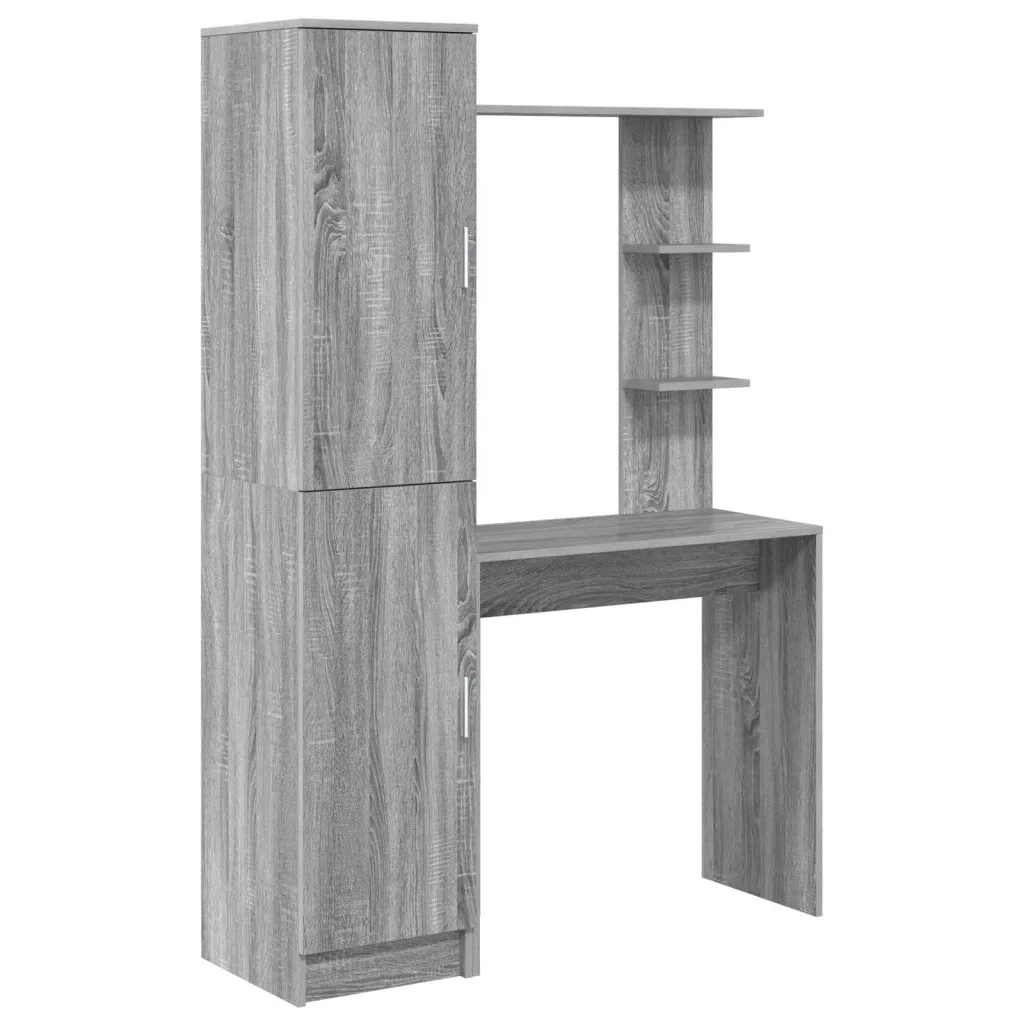 - Praktikus Tárolás: Deszkás polcokkal van felszerelve, az íróasztal bőséges helyet ad könyveknek és egyéb tárgyaknak, kényelmes használatot biztosítva. A zsanéros ajtók védik a dolgaidat, és ha zárva vannak, rendezett megjelenést adnak.