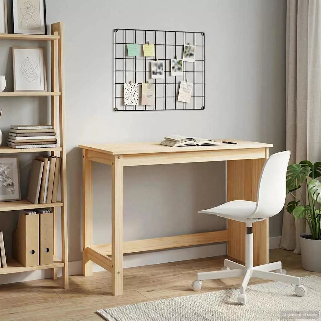 - Tömör fenyőfa konstrukció Az íróasztal lábai, kerete és felülete tömör fenyőből készülnek, ami erős és tartós anyag. Az anyag kiválasztása biztosítja, hogy az asztal mindennapi használat közben se változzon meg, és megőrzi a struktúráját különböző beltéri környezetekben. A fenyőfa természetes erezete melegséget és karaktert ad a dizájnhoz.
