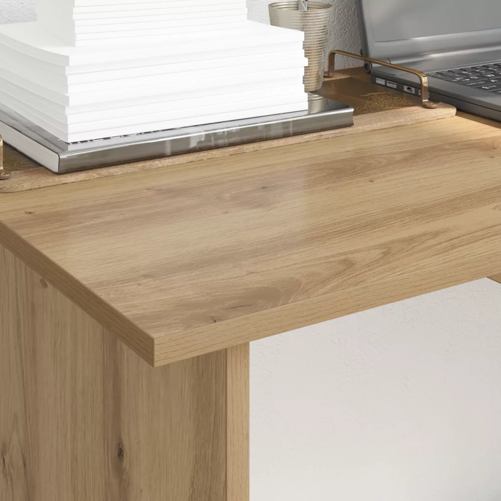 - Sokoldalú javasolt felhasználások: Tanuláshoz, otthoni irodához vagy kompakt munkakuckókhoz készült, ez az íróasztal tökéletes olyan tevékenységekre mint az írás, laptopozás, vagy kreatív hobbik. Alkalmazkodó természetével elengedhetetlen darab lehet azoknak az otthonoknak, ahol stílus és praktikum jár együtt szűk helyeken, alkalmazkodva a változó életvitelhez.
