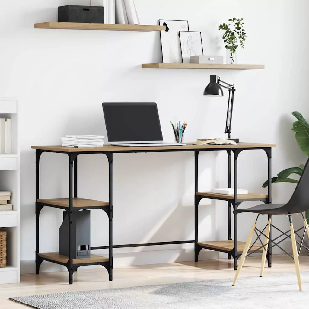- Anyagok: Az íróasztal masszív fa és fém kombinációval készült, így biztosítja a stabilitást és a hosszú élettartamot. A minőségi fa természetes szépsége szuperül kiegészíti a hideg fém keretét, így egyedi rusztikus-ipari hatást teremt. Ez az anyagválasztás nemcsak jól néz ki, de megbízható alátámasztást is nyújt a szükséges dolgokhoz.