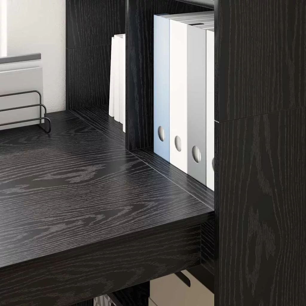- Praktikus polcok: Az asztal bordás polcokkal van felszerelve, így könnyen hozzáférsz a könyvekhez, írószerekhez és egyéb irodai kellékekhez. Segít rendben tartani a dolgokat, miközben stílusos is.