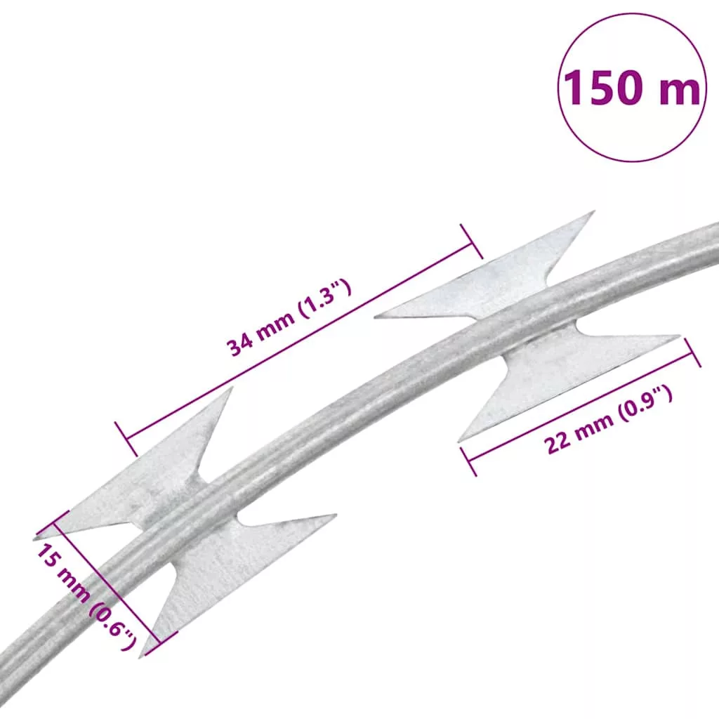A masszív szögesdrót, amely 150 m hosszúságig terjed, a nagyobb biztonság érdekében a kerti kerítés tetejére tekerhető. Tekercsben 13-26 m hosszúságot fed le. A pengékkel ellátott kialakítás távol tartja a nem kívánt vendégeket a kerttől.
