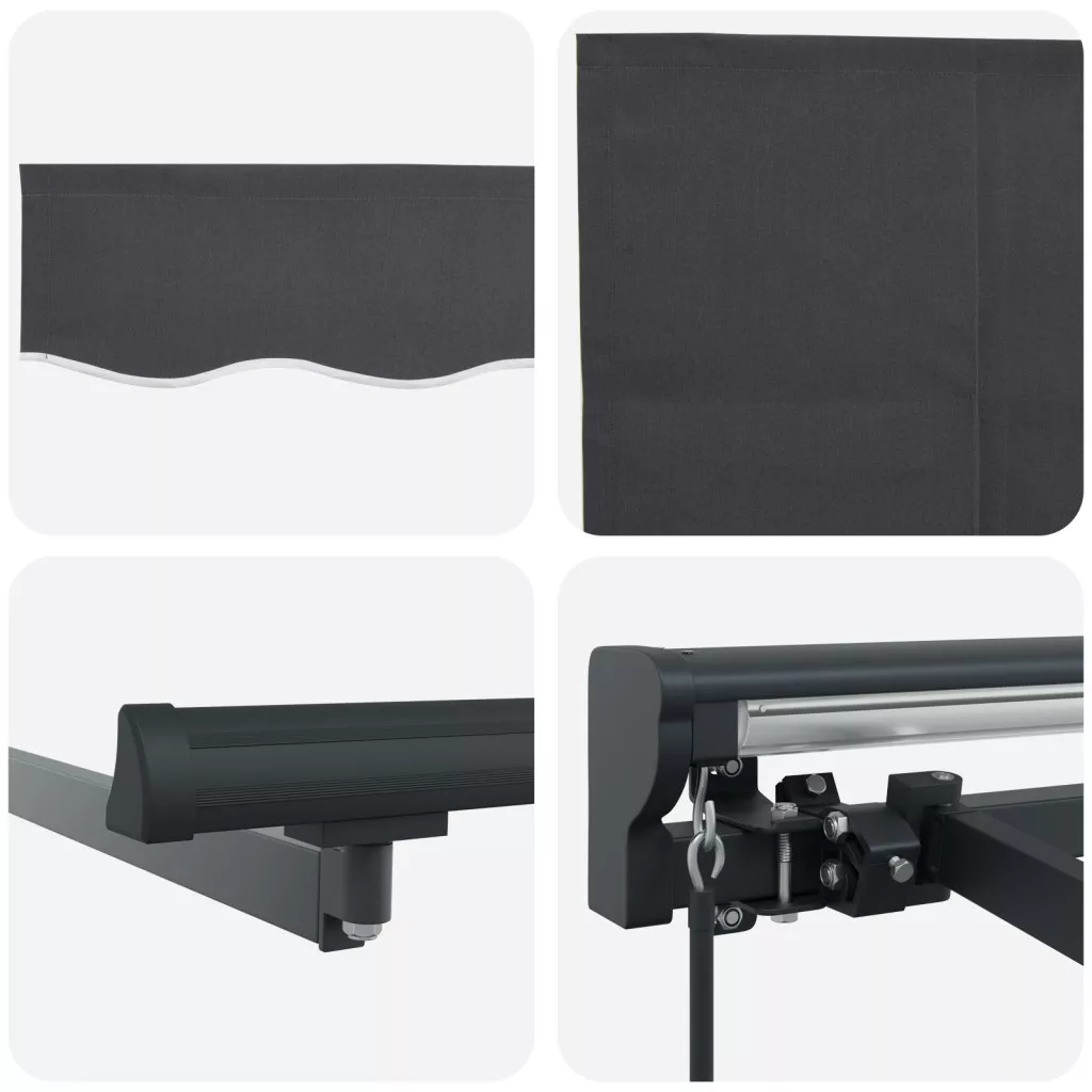 - Anyagösszetétel: A napellenző 100% prémium poliészterből készült, ismert tartósságáról és UV-védelméről. Biztosítja, hogy a szövet sokáig megtartja a szép antracit színét, ami ideálissá teszi kültéri használatra.