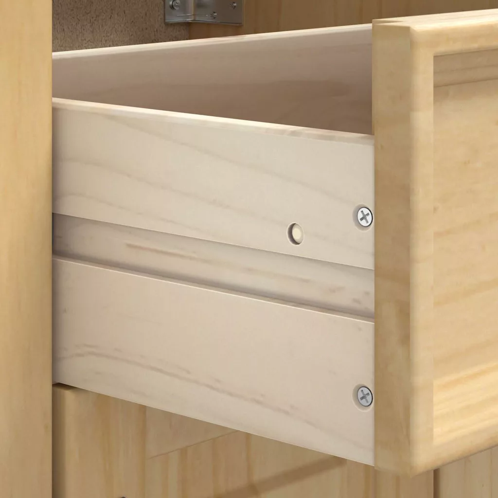 - Tömör fenyőfa szerkezet: Hosszú élettartamra tervezve, ez a szekrény strapabíró tömör fenyőfából készült, ami egy természetes eleganciát ad a szobádnak. A fenyőfa erősebbé teszi a tárolási igényeid kezelését.