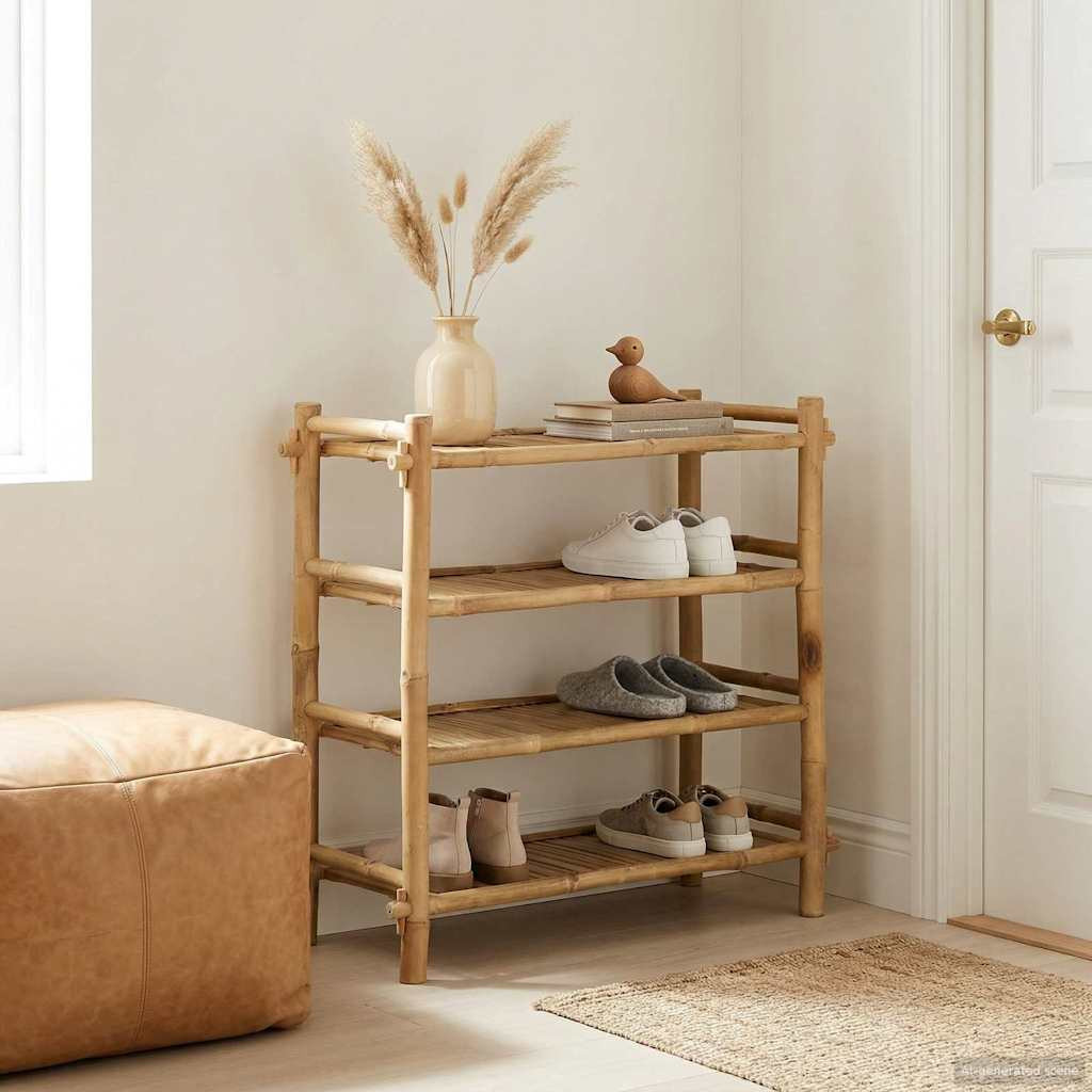 Ez a modern cipőtároló remek megoldás a lábbelik rendben tartására, miközben feldobja a nappali kinézetét. Természetes bambuszból készült, praktikus és stílusos alternatíva a cipőgyűjteményednek.
