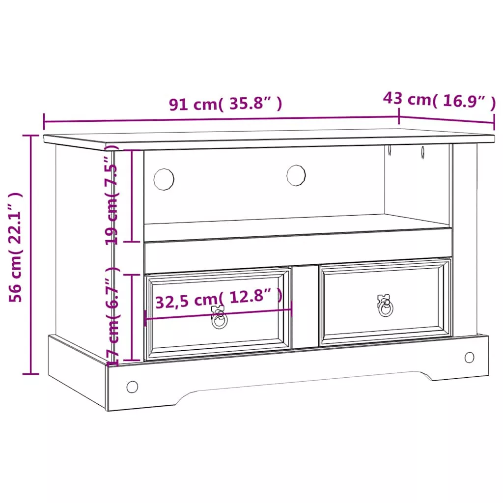 Ez a kiváló minőségű fa TV-szekrény mexikói „Corona” stílusú bútor. A viaszos fenyő rusztikus mexikói bájt áraszt, amitől nagyszerű kiegészítője lesz nappalijának.
