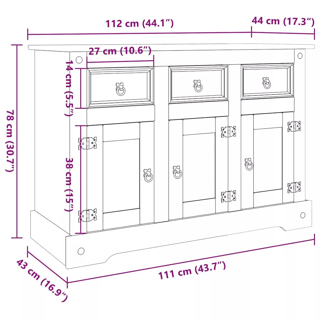 - Mérete: 112 x 43 x 78 cm (Szé x Mé x Ma)