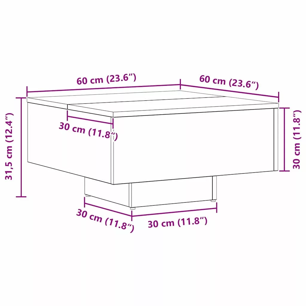 - Általános dimenziók: 60 x 60 x 31,5 cm (Ho x Szé x Ma)