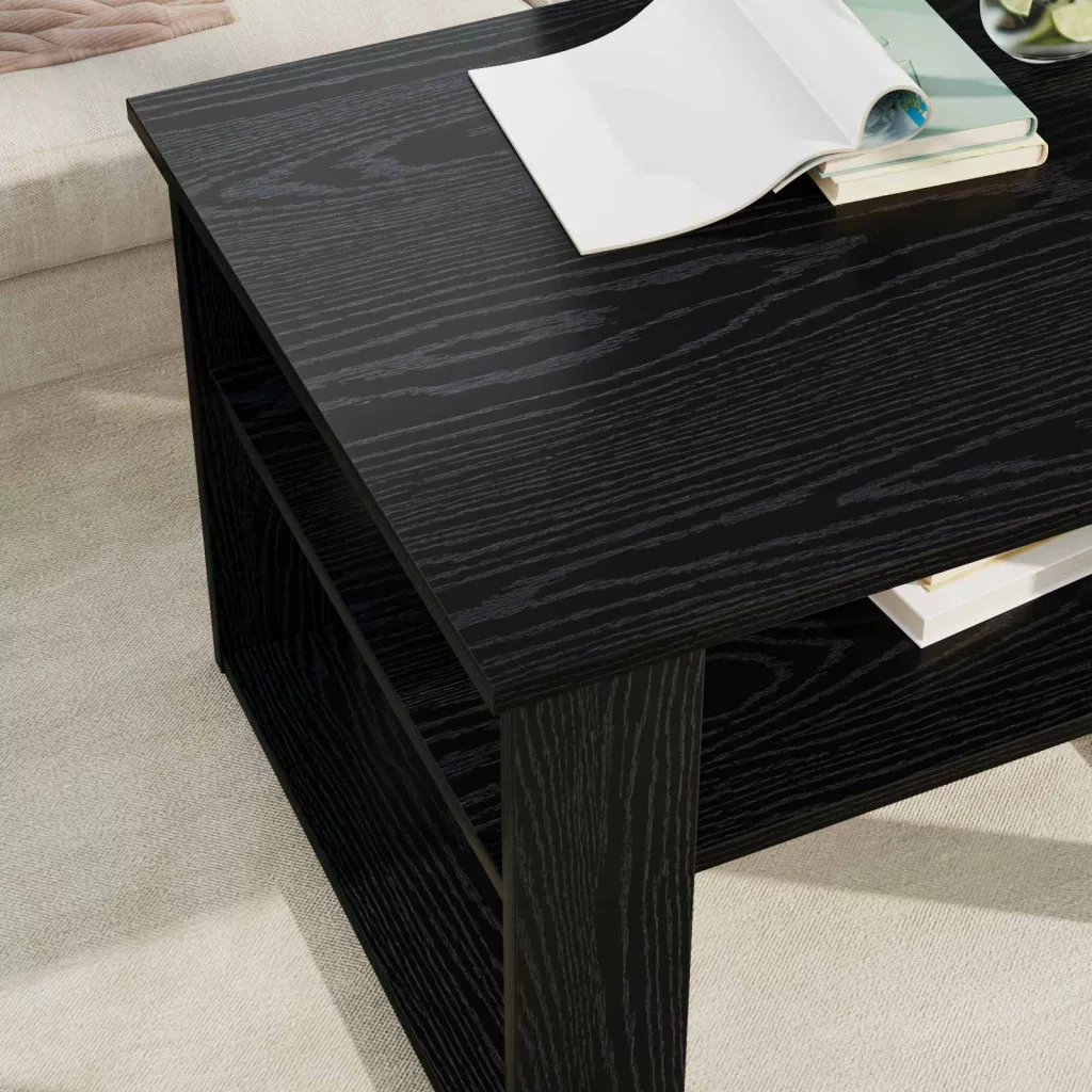 - Tartozékok: Az asztal mérnöki fából készült deszkapolcokat tartalmaz, amelyek egyszerű, de hatékony tárolási megoldást nyújtanak. Ezen polcok segítenek az rendszerezésben, legyen szó magazinokról vagy távirányítókról, biztosítva a rendet a felületen.