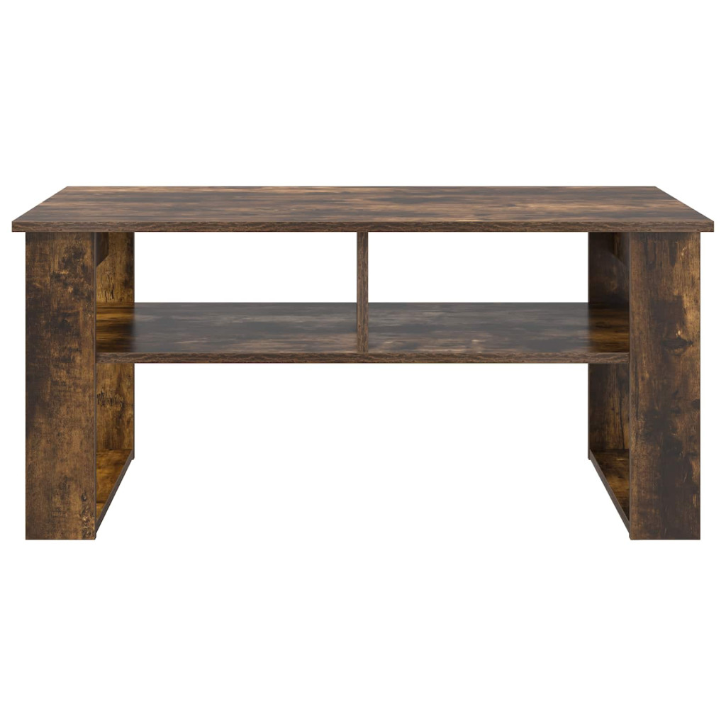 - Tartozékok: Az asztal mérnöki fából készült deszkapolcokat tartalmaz, amelyek egyszerű, de hatékony tárolási megoldást nyújtanak. Ezen polcok segítenek az rendszerezésben, legyen szó magazinokról vagy távirányítókról, biztosítva a rendet a felületen.