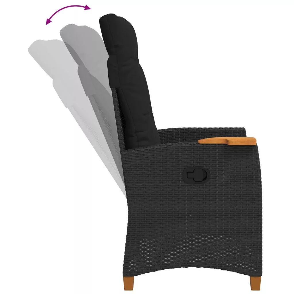 A modern fekvő kerti szék stílusos kiegészítője bármilyen kültéri térnek: ötvözi a funkcionalitást a letisztult, modern dizájnnal. Kényelem és sokoldalúság jellemzi, nagyszerű a kertben való használatra, lehetővé téve, hogy a felhasználók a természetben pihenjenek, miközben élvezik a kortárs vonalakat és minimalista megjelenést. A fekete porbevonatos acélváz jól illik a rattan borítás természetes színeihez, vizuálisan kellemes kontrasztot teremtve, ami ideális a pihenőhelyekhez. Állítható háttámlája lehetővé teszi a személyre szabott kényelmet, így tökéletes pillanatokra a relaxálásra vagy a társasági összejövetelekre.