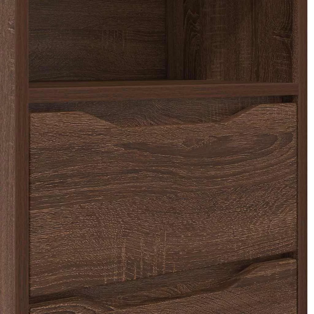 - Mérnöki fa: Az éjjeli asztal teljes egészében mérnöki fából készült, beleértve a fiókjait, hátlapját, keretét, polcait és a felületi anyagot. A szilárdságával és megbízhatóságával ismert mérnöki fa stabil és tartós szerkezetet biztosít. Fokozza az asztal teherbírását, így hosszú távon sem torzul vagy repedezik.