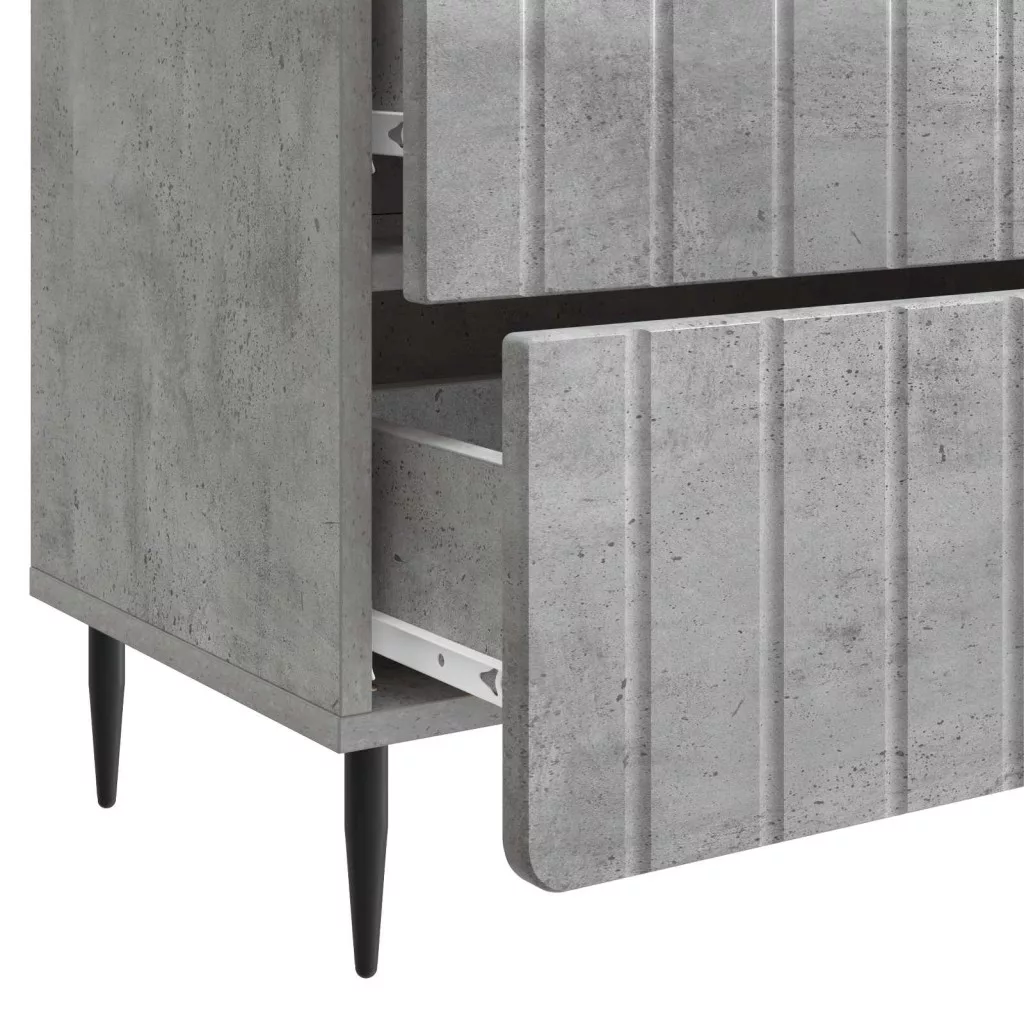 - Modern vas lábak: A fenntartott vas lábak segítik a stabilitást, elegáns megoldást adva a bútor alá. Az elegáns dizájn megkönnyíti a takarítást, így a szoba frissebbnek néz ki. Ez a modern vonalvezetés hangsúlyozza a szekrény praktikumát és esztétikáját.