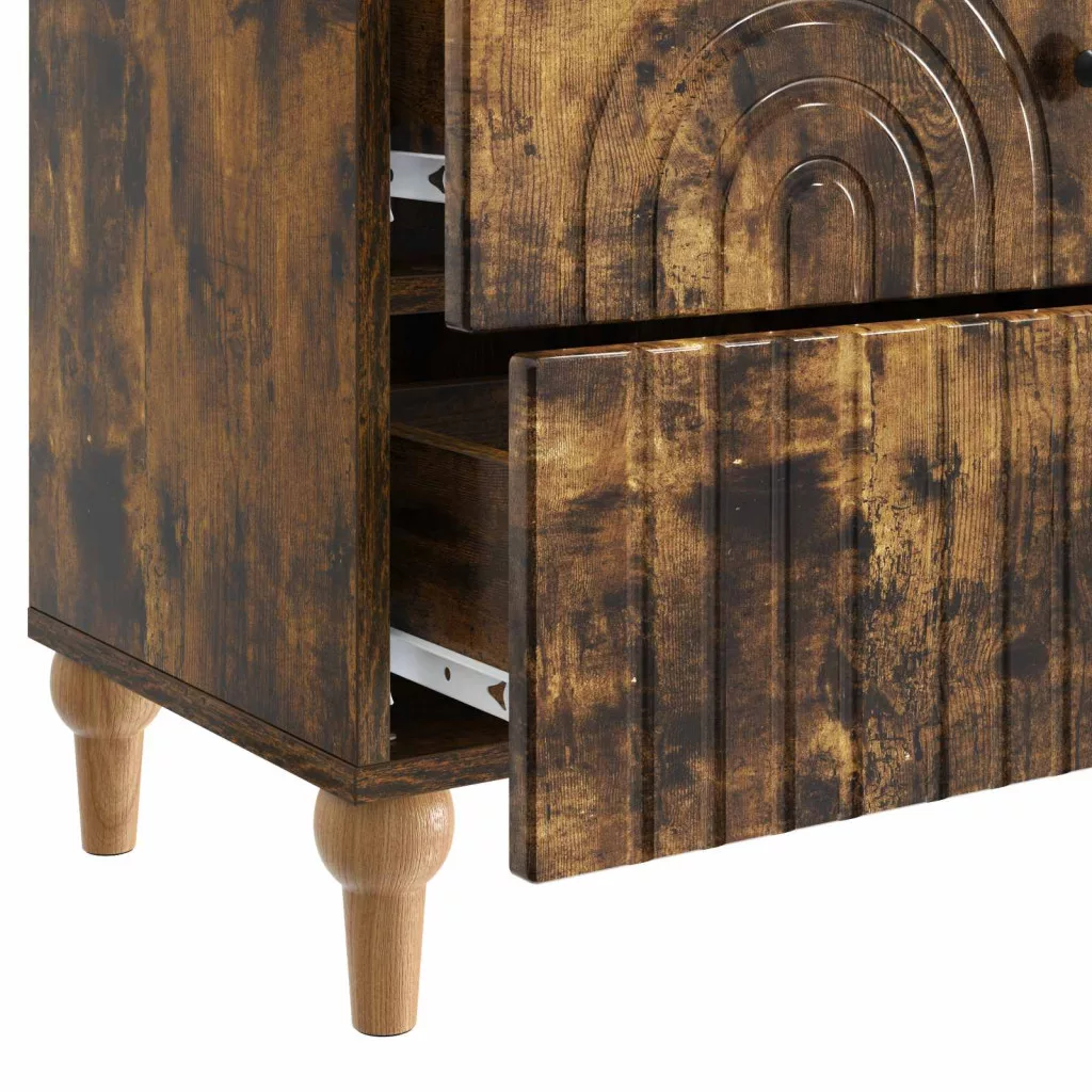 Ez az éjjeli szekrény tényleg a modern dizájnt képviseli, letisztult, téglalap alakú formával és csíkos kerettel. Tökéletesen hozzáadja a funkciót és bájt bármely nappalihoz vagy hálószobához, ideális társ egy ágy mellett, tárolást biztosítva, miközben harmonikusan illeszkedik a szoba hangulatához. Minimalista, de mégis stílusos megjelenése miatt bármilyen dekorációs témához passzol, így sokoldalú a laza és kifinomult terekhez is. Az ipari fa felületek szép erezete a minőség és a stabilitás érzetét adja.