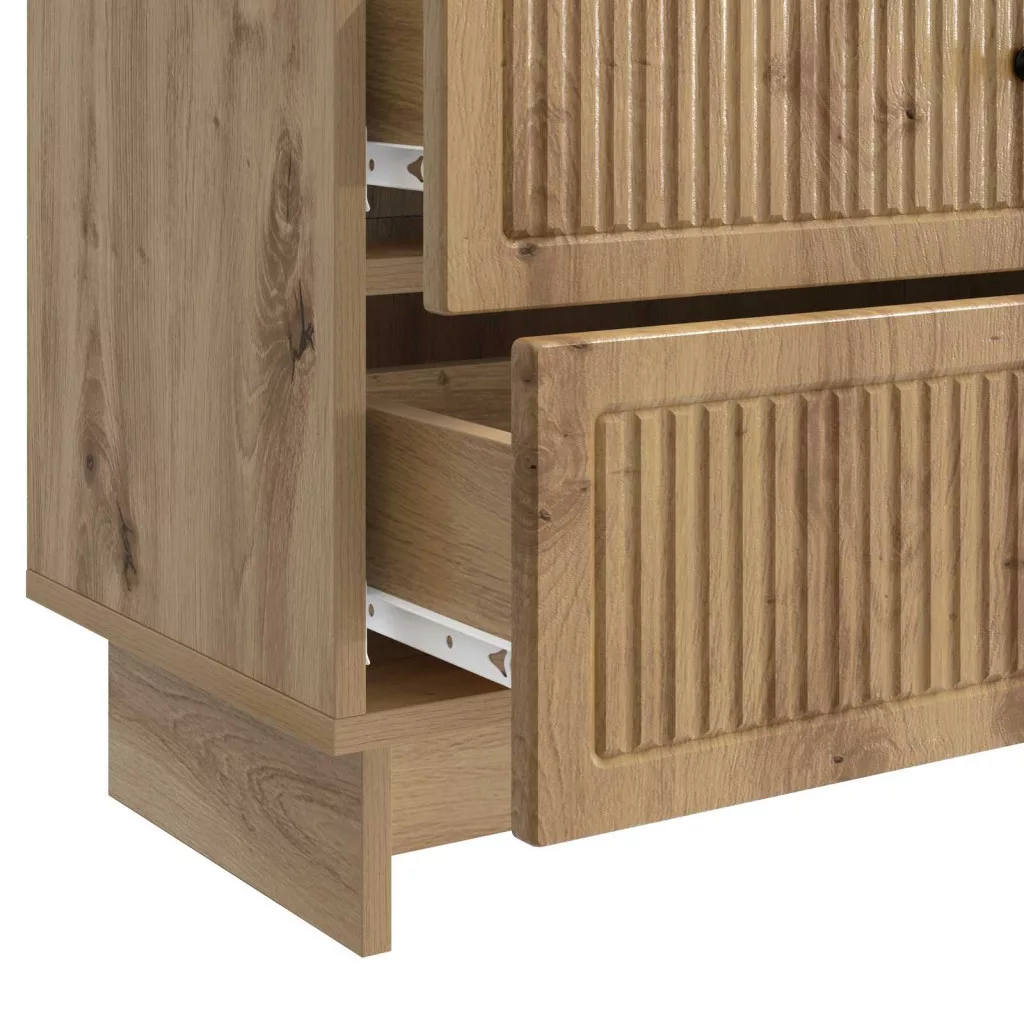 - Mérnöki fa konstrukció Ez az éjjeli asztal strapabíró mérnöki fából készült, így hosszú élettartamot és szép megjelenést nyújt. Az anyag bírja a mindennapi használatot, biztosítva, hogy évekig a szoba ékessége maradjon. Meleg színei és sima felülete kellemes érzést adnak a modern belső tereknek.