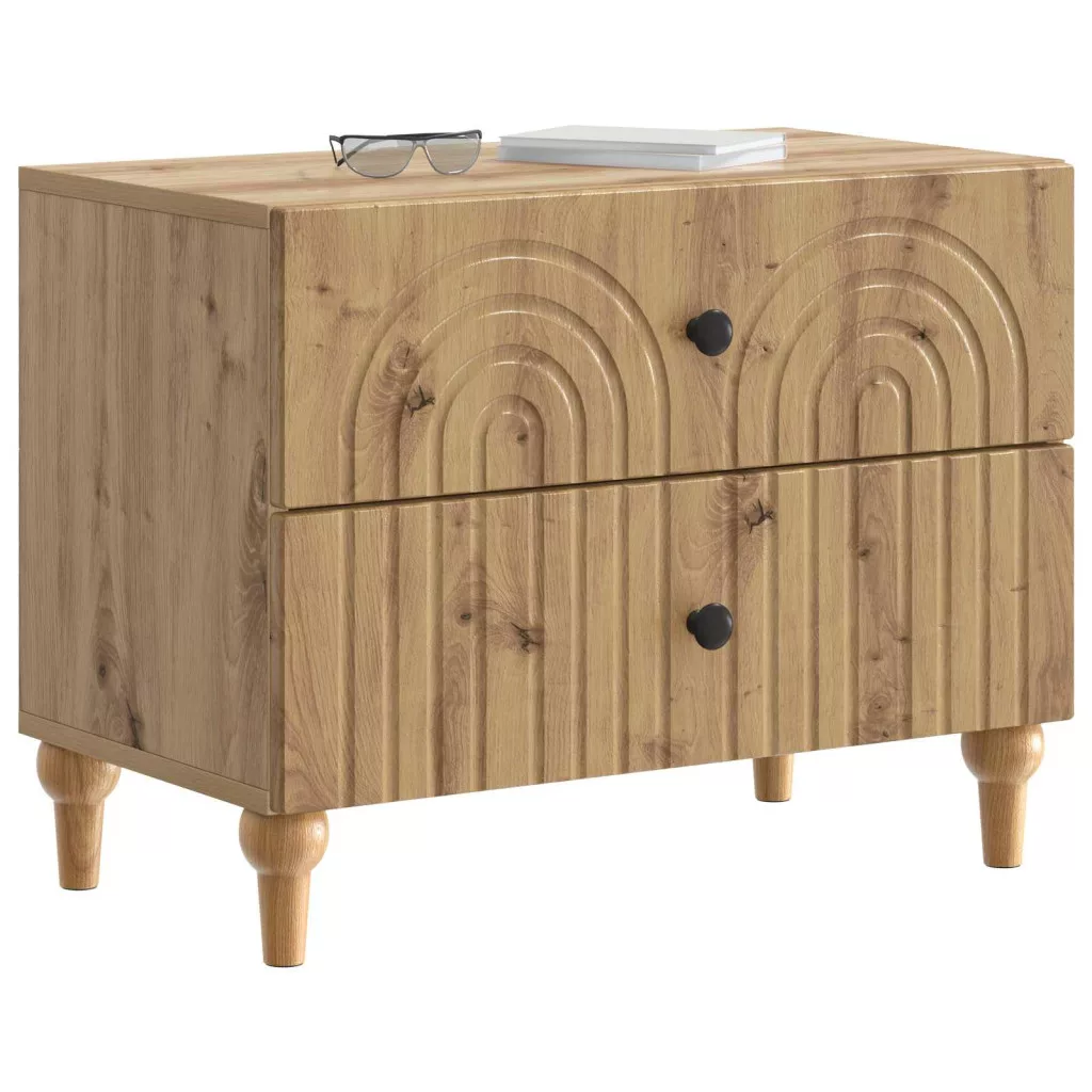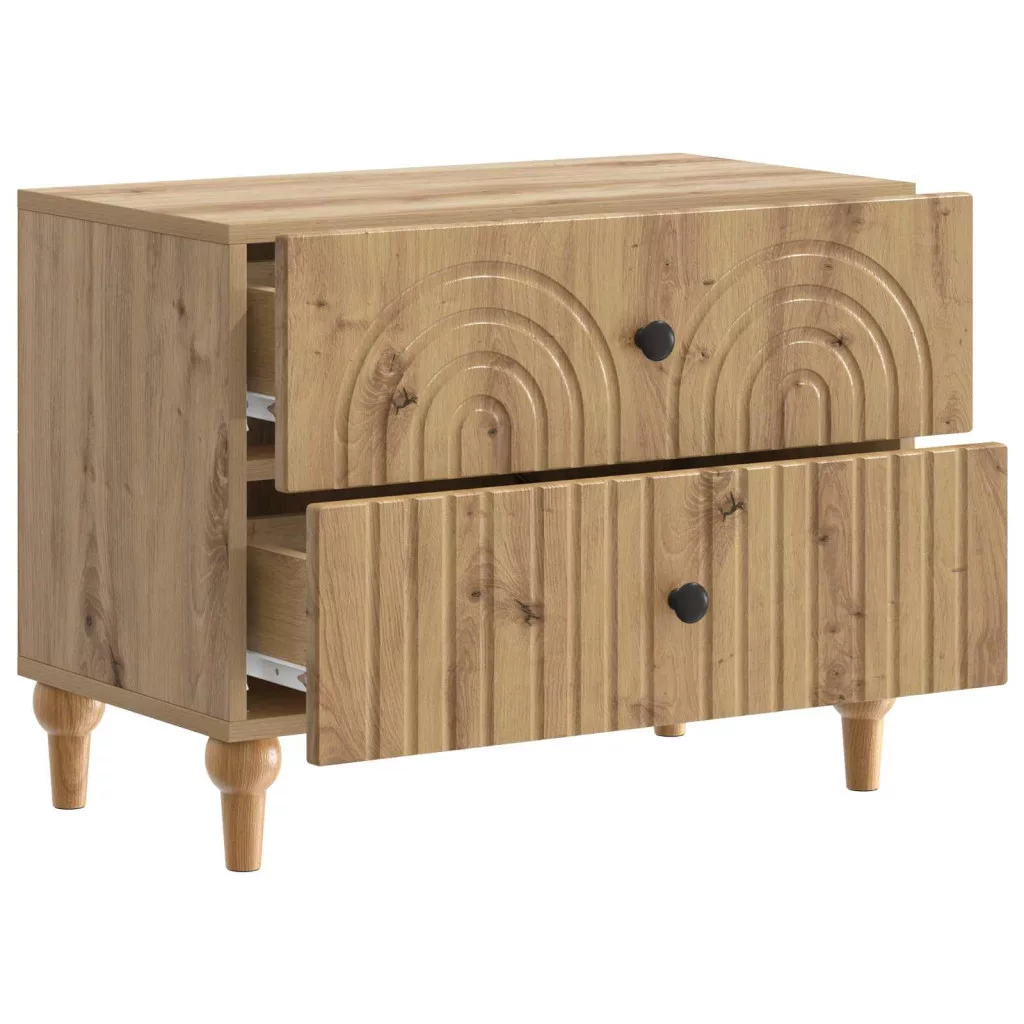 Ez az éjjeli szekrény tényleg a modern dizájnt képviseli, letisztult, téglalap alakú formával és csíkos kerettel. Tökéletesen hozzáadja a funkciót és bájt bármely nappalihoz vagy hálószobához, ideális társ egy ágy mellett, tárolást biztosítva, miközben harmonikusan illeszkedik a szoba hangulatához. Minimalista, de mégis stílusos megjelenése miatt bármilyen dekorációs témához passzol, így sokoldalú a laza és kifinomult terekhez is. Az ipari fa felületek szép erezete a minőség és a stabilitás érzetét adja.