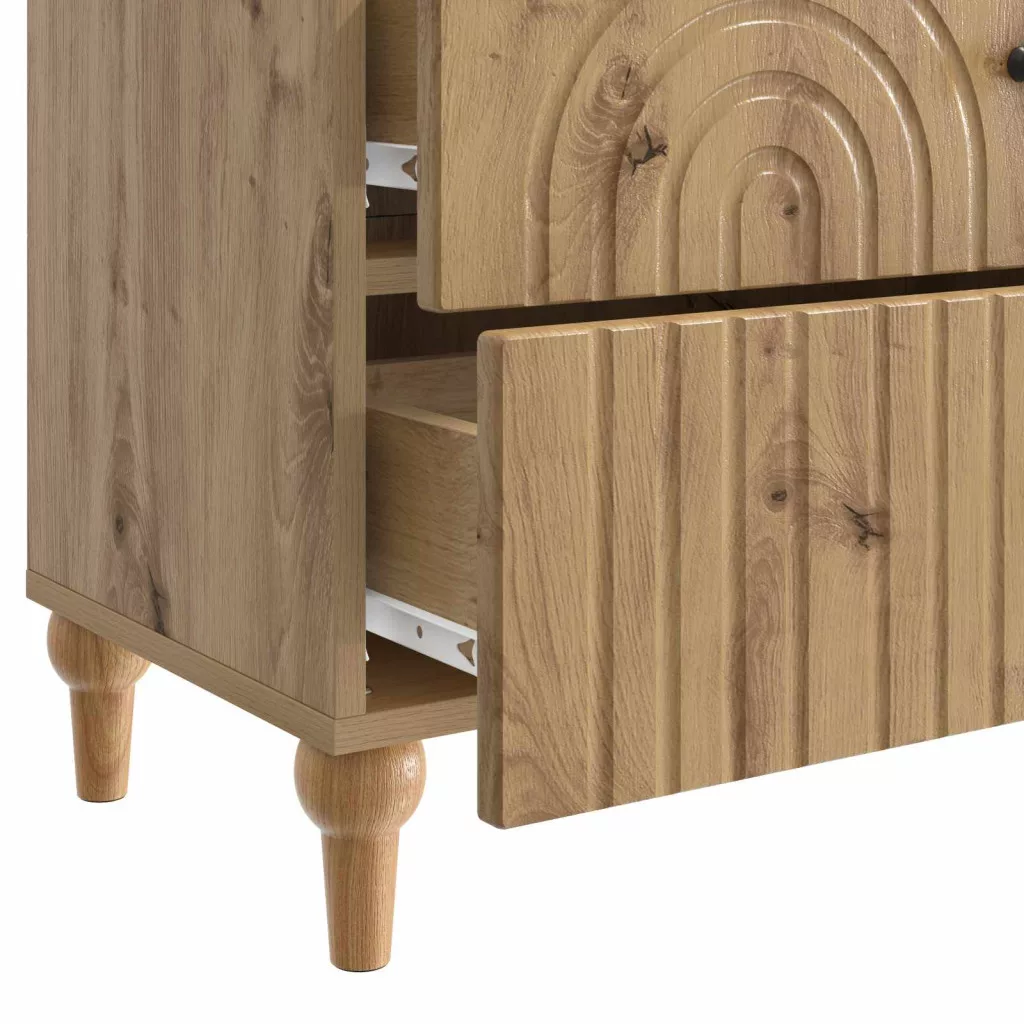 - Bőséges tárolófunkciók A fiókok sima fogantyúival ellátott, ideális személyes tárgyak és alapvető dolgok tárolására. Ez a dizájn segít rendezetten tartani a teret, praktikus kiegészítővé téve a lakás bármely részéhez.