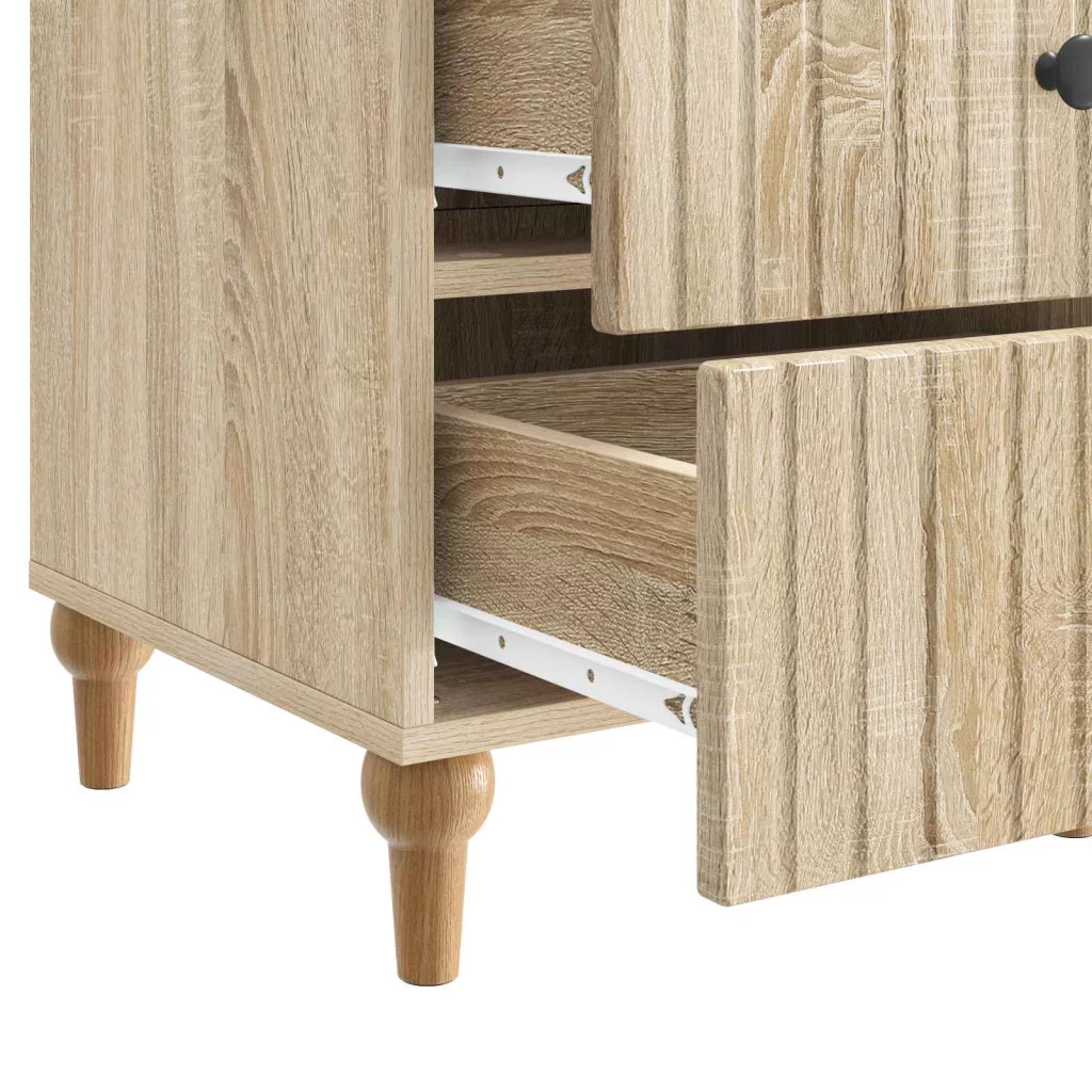 - Funkcionális görgős fiókok: A fiókok praktikus kihúzós mechanizmussal vannak felszerelve, így simán és könnyedén ki tudod őket húzni. Ez a funkció felhasználóbarát, és tökéletesen alkalmas könyvek, magazinok vagy egyedi tárgyak tárolására, rendezetten tartva az élettered.