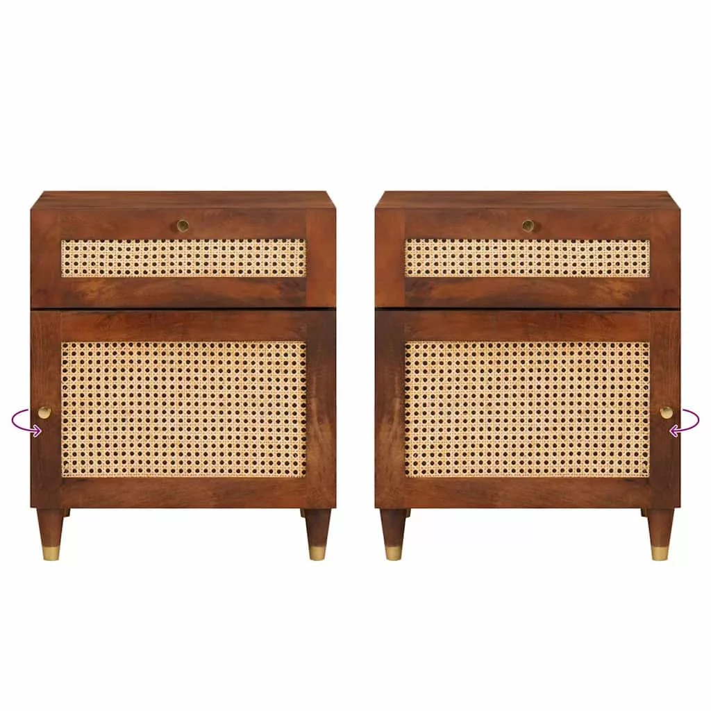 - Elegáns anyagok: A tömör mangófából készült éjjeli asztal gazdag, természetes textúrával rendelkezik, ami bármilyen belső stílushoz jól illik. Tartóssága és környezetbarát jellege miatt ideális választás, miközben fokozza az esztétikát.