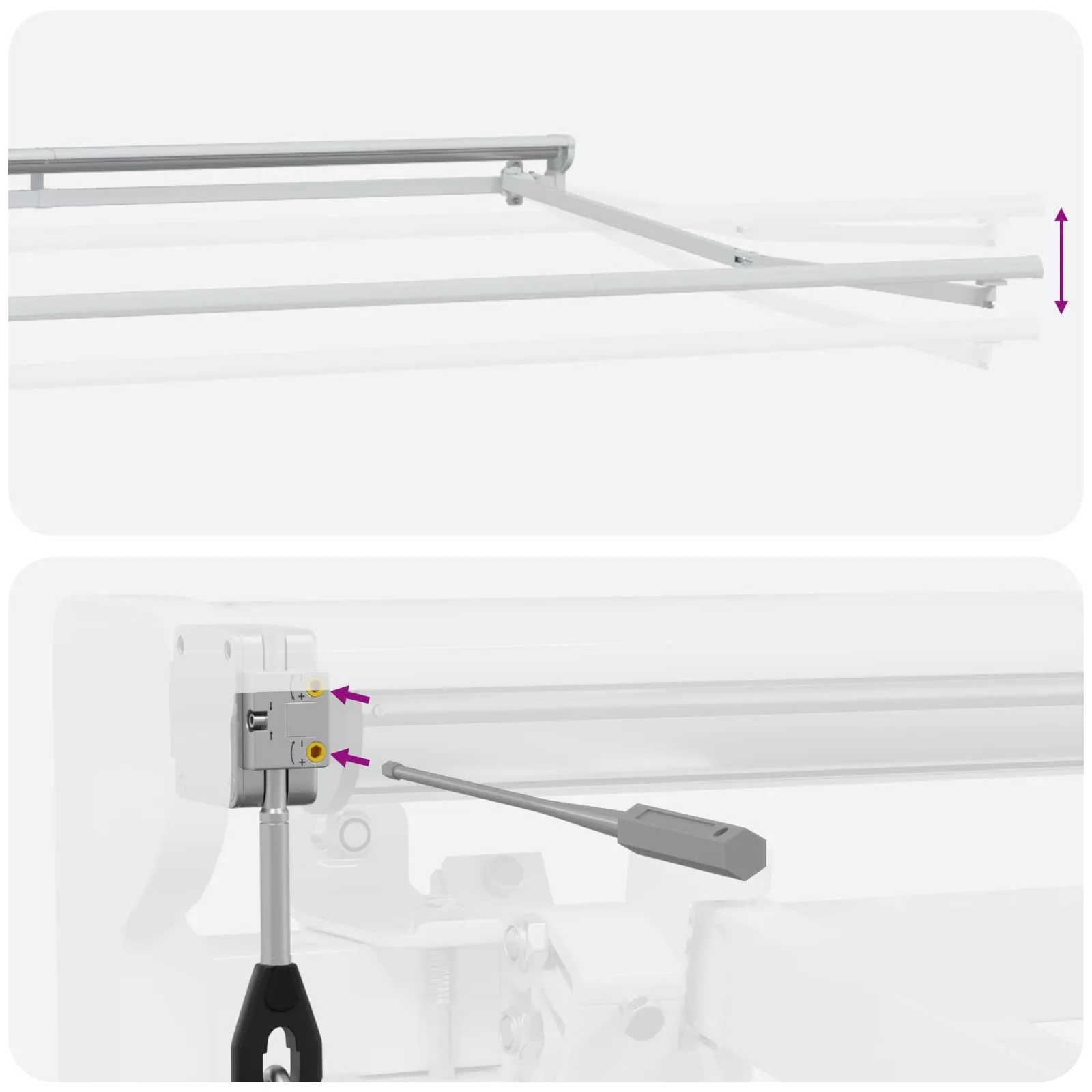 - Semi-Cassette dizájn: Behúzható karok és alumínium hengert tartalmaz, ami sima kihúzást és behúzást biztosít, míg megóvja a szövetet, ha nem használod.