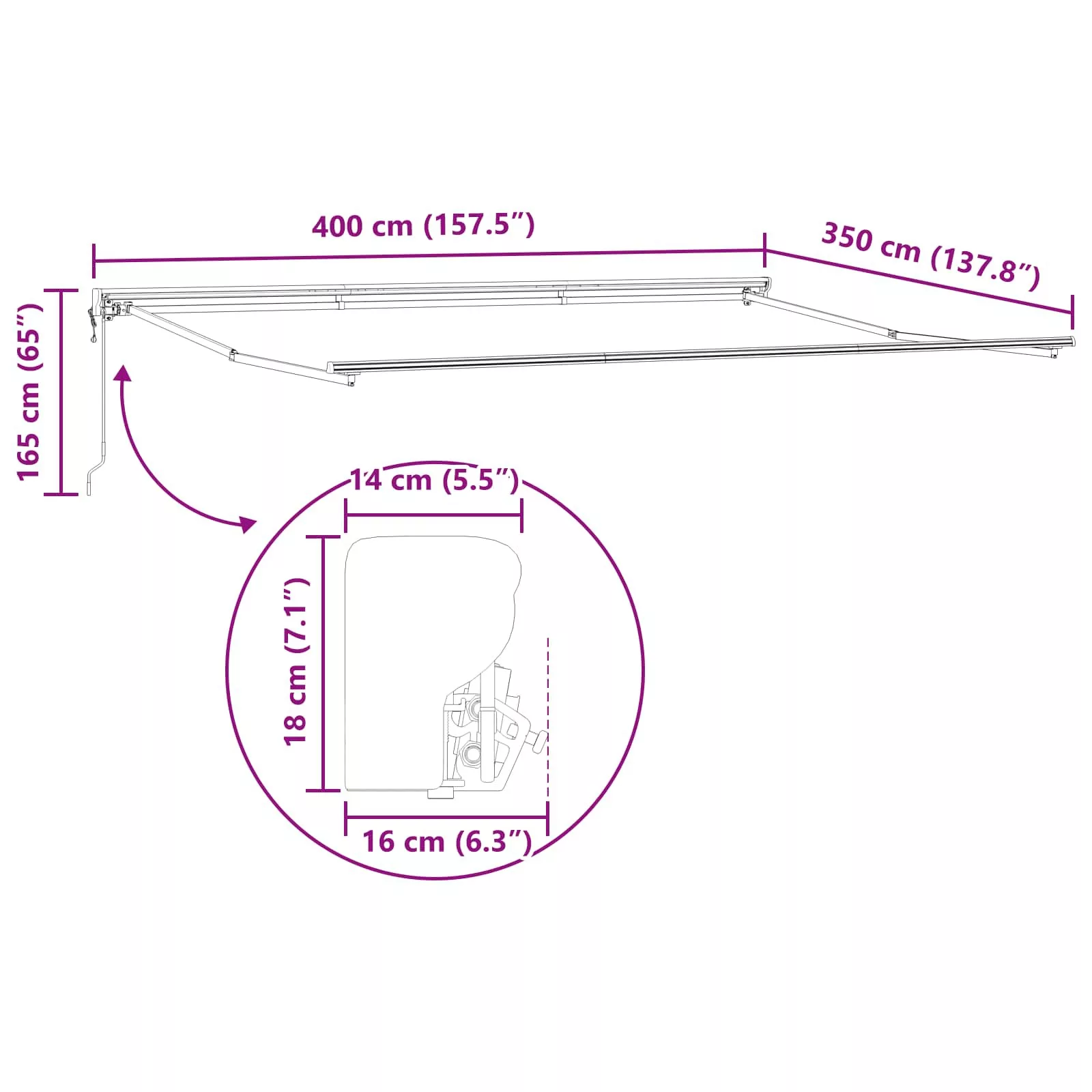 Ez a behúzható napellenző praktikus árnyékot nyújt a kültéri helyiségeknek, mint kertek és teraszok. Könnyen kihúzható vagy behúzható, szóval simán állíthatod, mennyi napfényre vagy árnyékra van szükséged. Remek választás tevékenységekhez, mint a kerti étkezés, pihenés vagy vendégfogadás, hiszen kellemes környezetet teremt, védelmet adva a nap és az enyhe eső ellen. A napellenző tökéletes eszköz a kültéri helyek maximális kihasználásához egész évben.