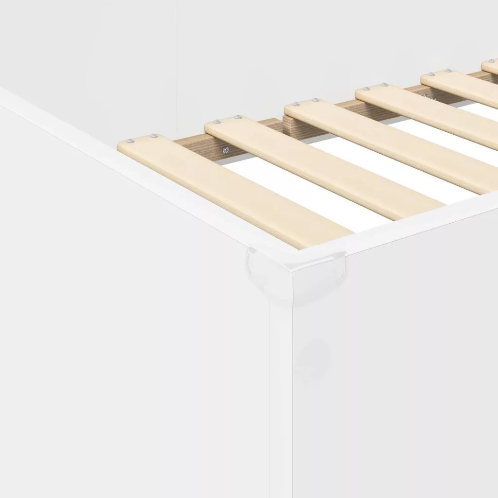 - Praktikus dizájn: Az ágy lécekre van építve, ami alátámasztja a matracot, és a biztonsági korlát segít abban, hogy biztonságban aludhass. Modern dizájnja az egyszerűség jegyében készült, ami jól illik a hasonló stílusú szobákhoz. Az egyszerűen mászható létra biztonságos utat biztosít a felső ágyhoz és kényelmes használatot nyújt.