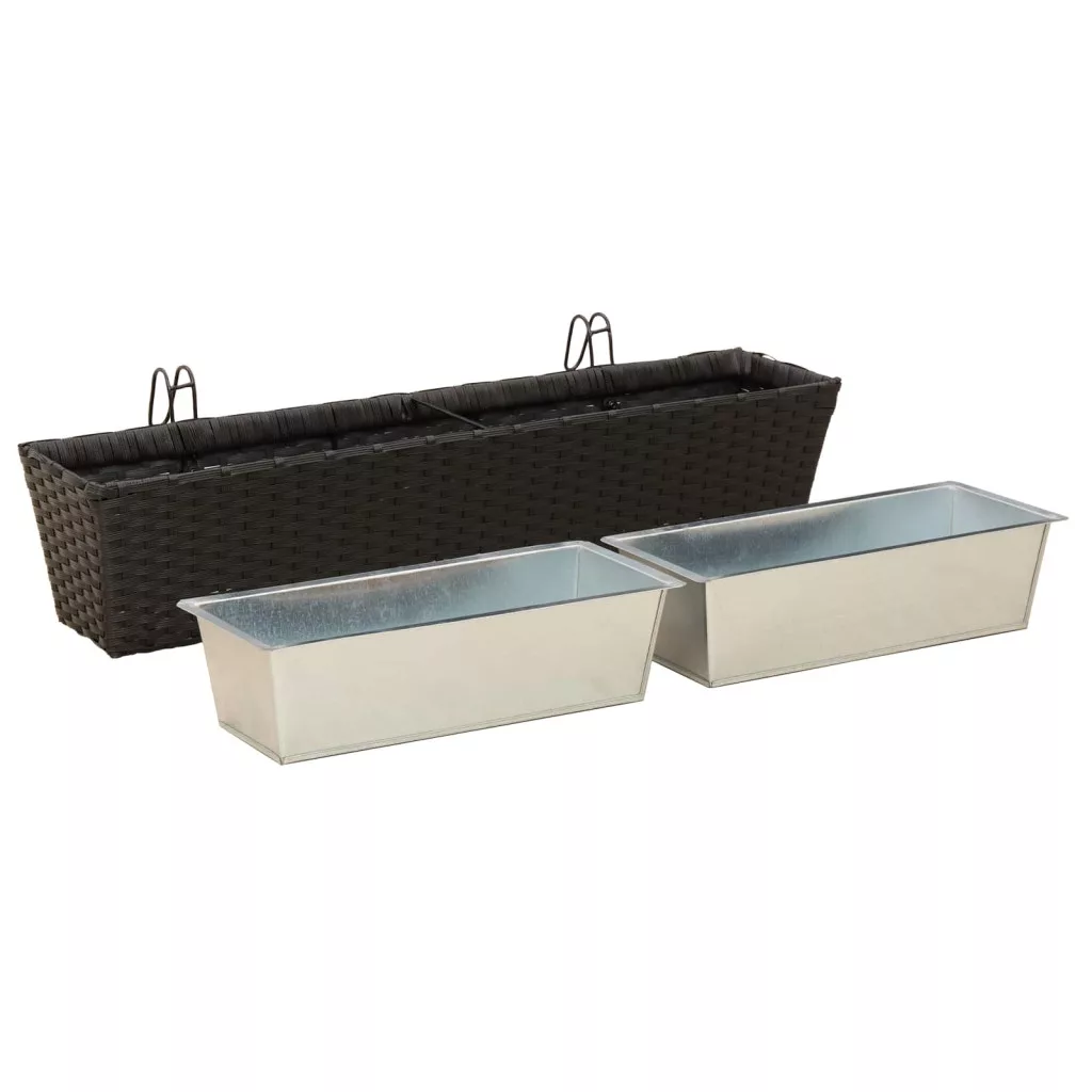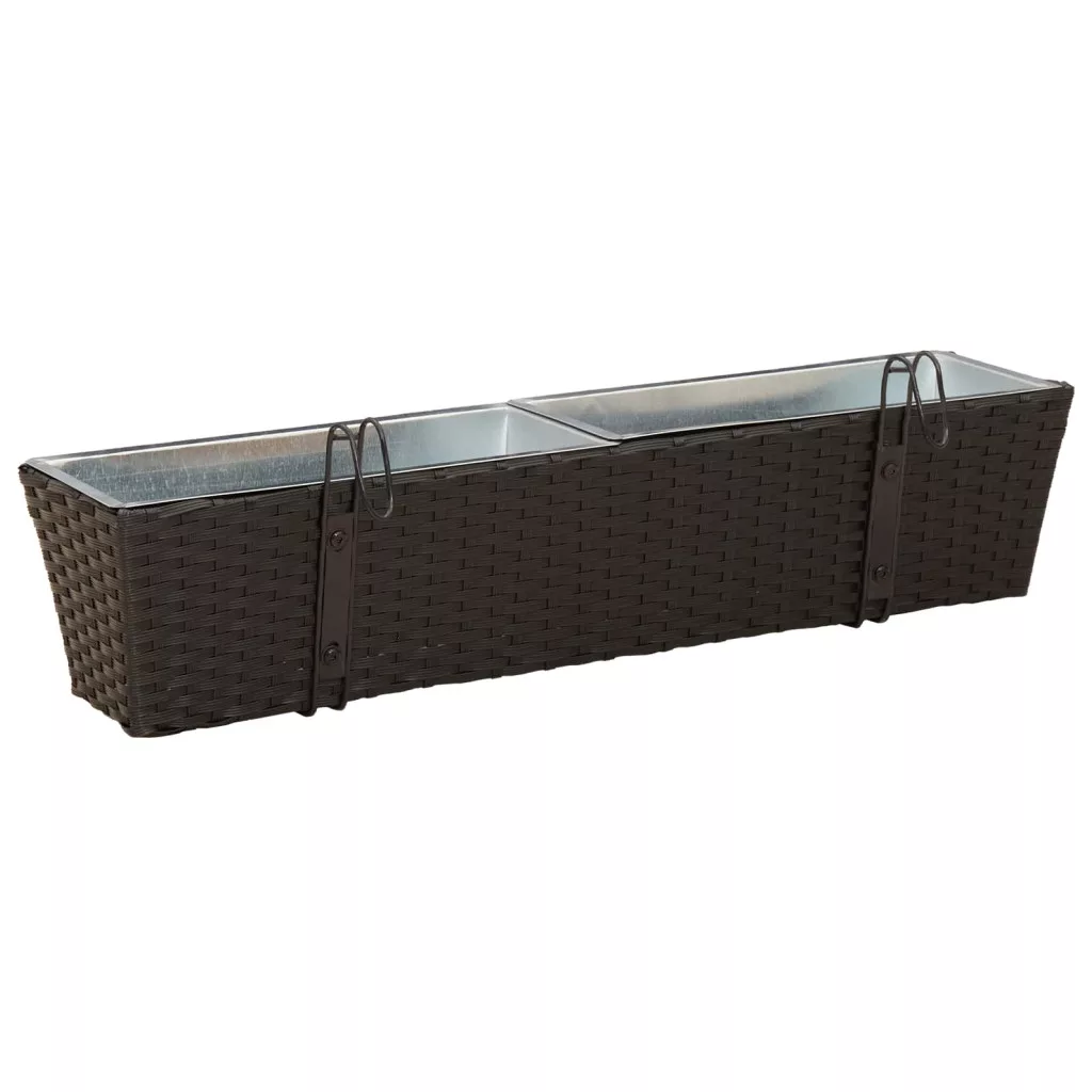 Ez a Balkonkorlát ültető kültéri használatra készült, modern minimalizmust ötvözve a funkcionális, rattanra hasonlító megjelenéssel. Trapéz alakja és a rattan mintázat elegáns, amely tökéletesen feldobja a teraszt vagy erkélyt!
