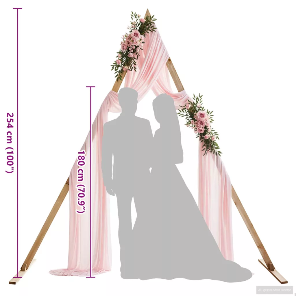 - Tömör fenyő szerkezet Tömör fenyőből készült, ez az esküvői ív stabilitást és erősséget garantál kültéri használatra. A fenyő minősége hosszú élettartamot biztosít, megőrzi szépségét, és csak minimális karbantartást igényel, hogy éveken át ragyogjon.