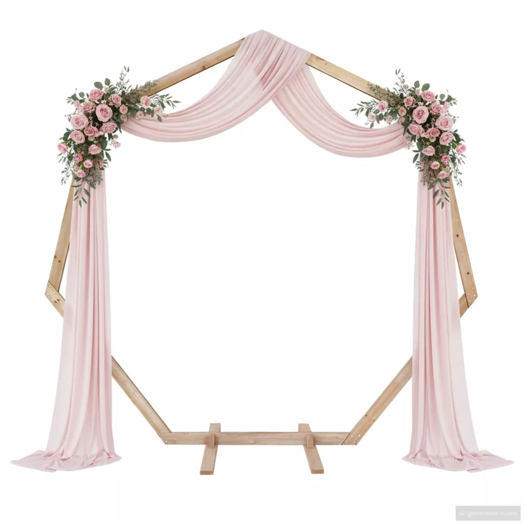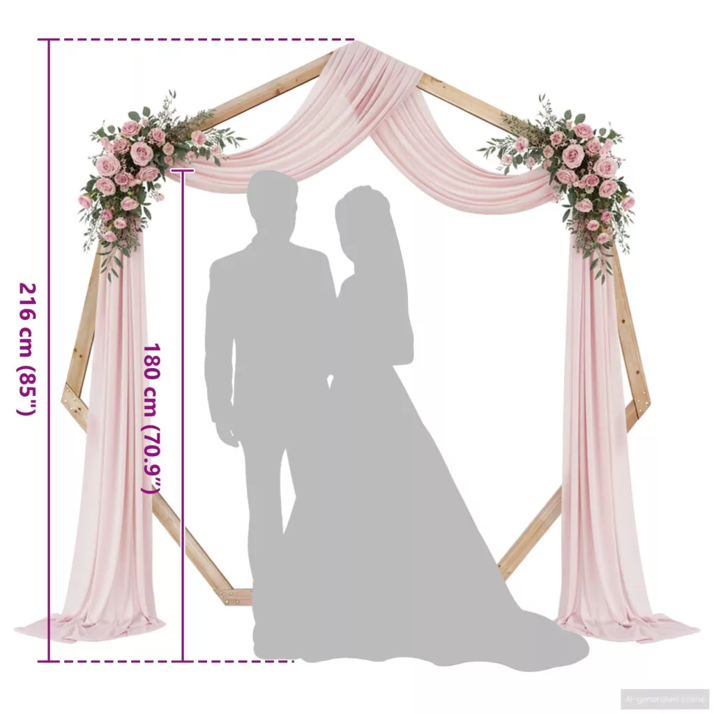 - Tömör fenyő szerkezet Tömör fenyőből készült, ez az esküvői ív stabilitást és erősséget garantál kültéri használatra. A fenyő minősége hosszú élettartamot biztosít, megőrzi szépségét, és csak minimális karbantartást igényel, hogy éveken át ragyogjon.