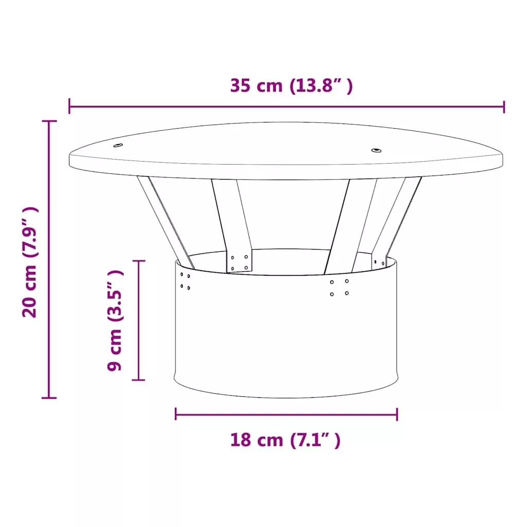 - Tartalmazott alkatrészek: A termék 1 x esővédő kéményből áll, ami megvédi a kültéri kandallót. Fő funkciója, hogy megakadályozza, hogy az eső és a törmelék rontsa el a tűzhely állapotát. A burkolat könnyen összeszerelhető egy csavarhúzó segítségével, így felhasználóbarát, ami növeli a befektetésed élettartamát.