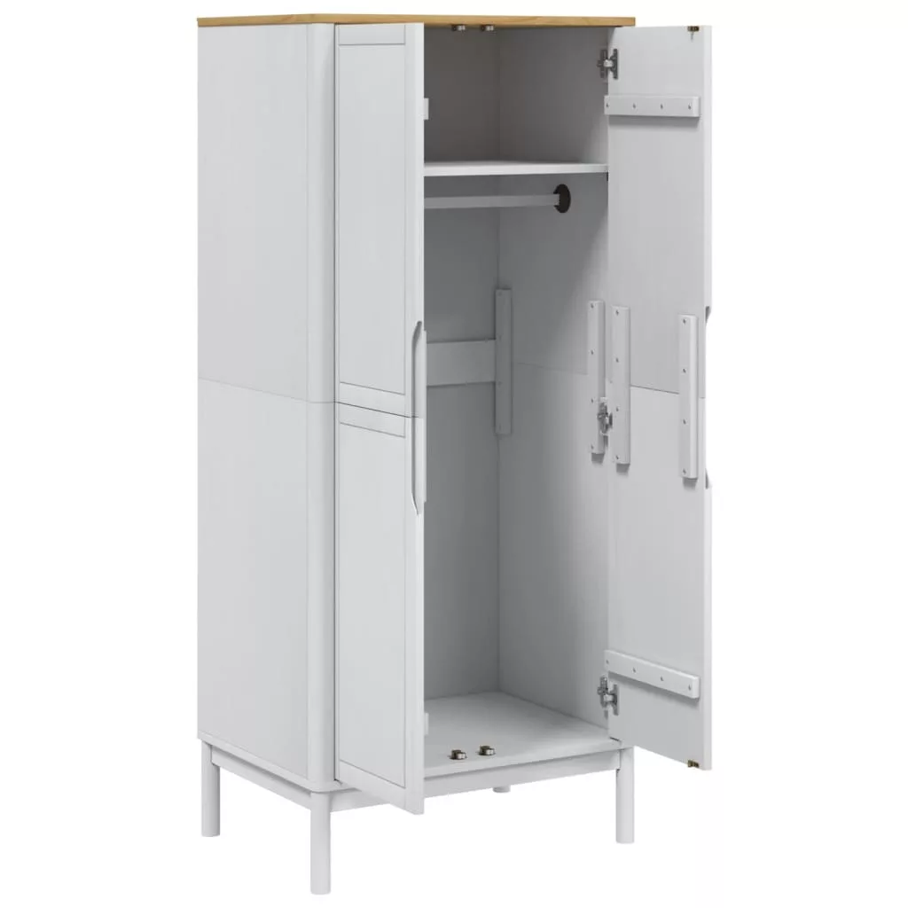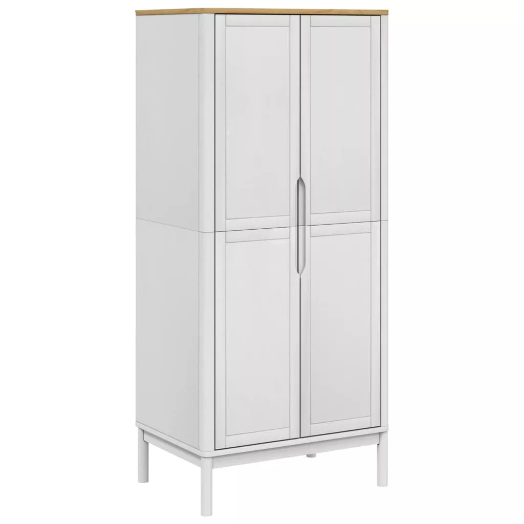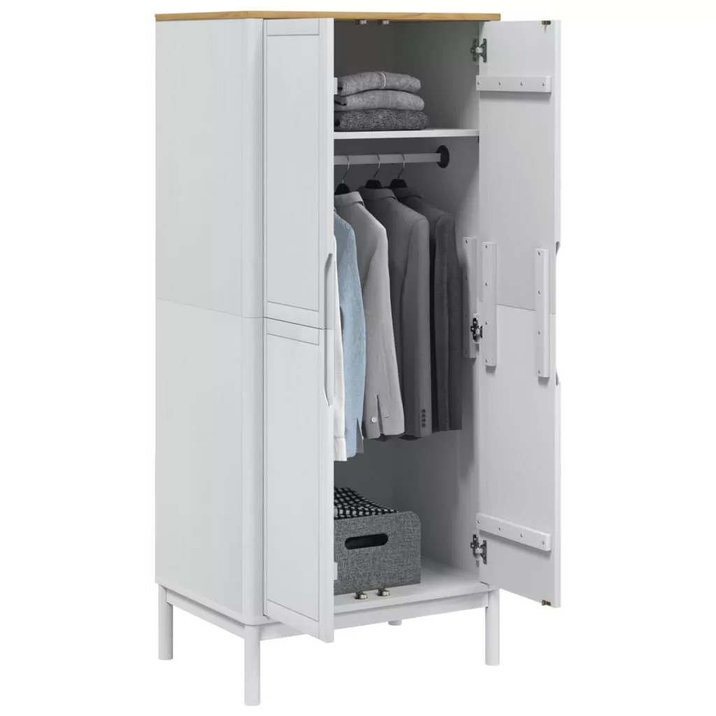 Ez a klasszikus stílusú faszekrény bőséges tárolóhelyet biztosít ruhái, cipői és kiegészítői rendezett tárolásához.