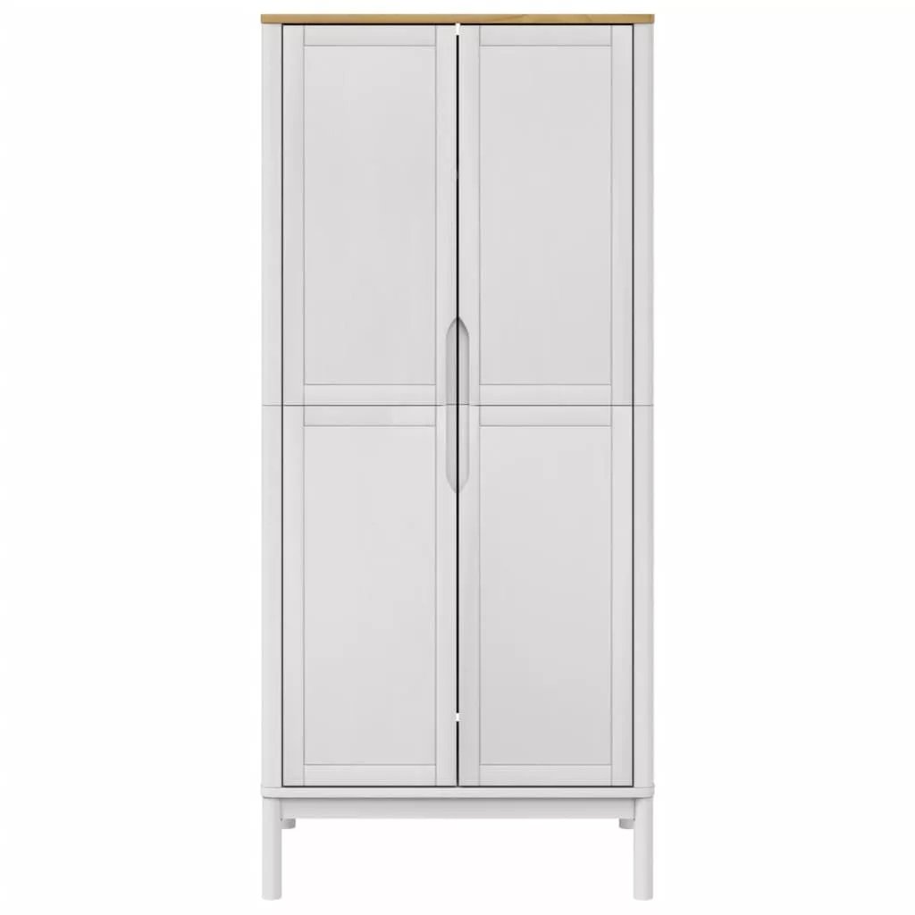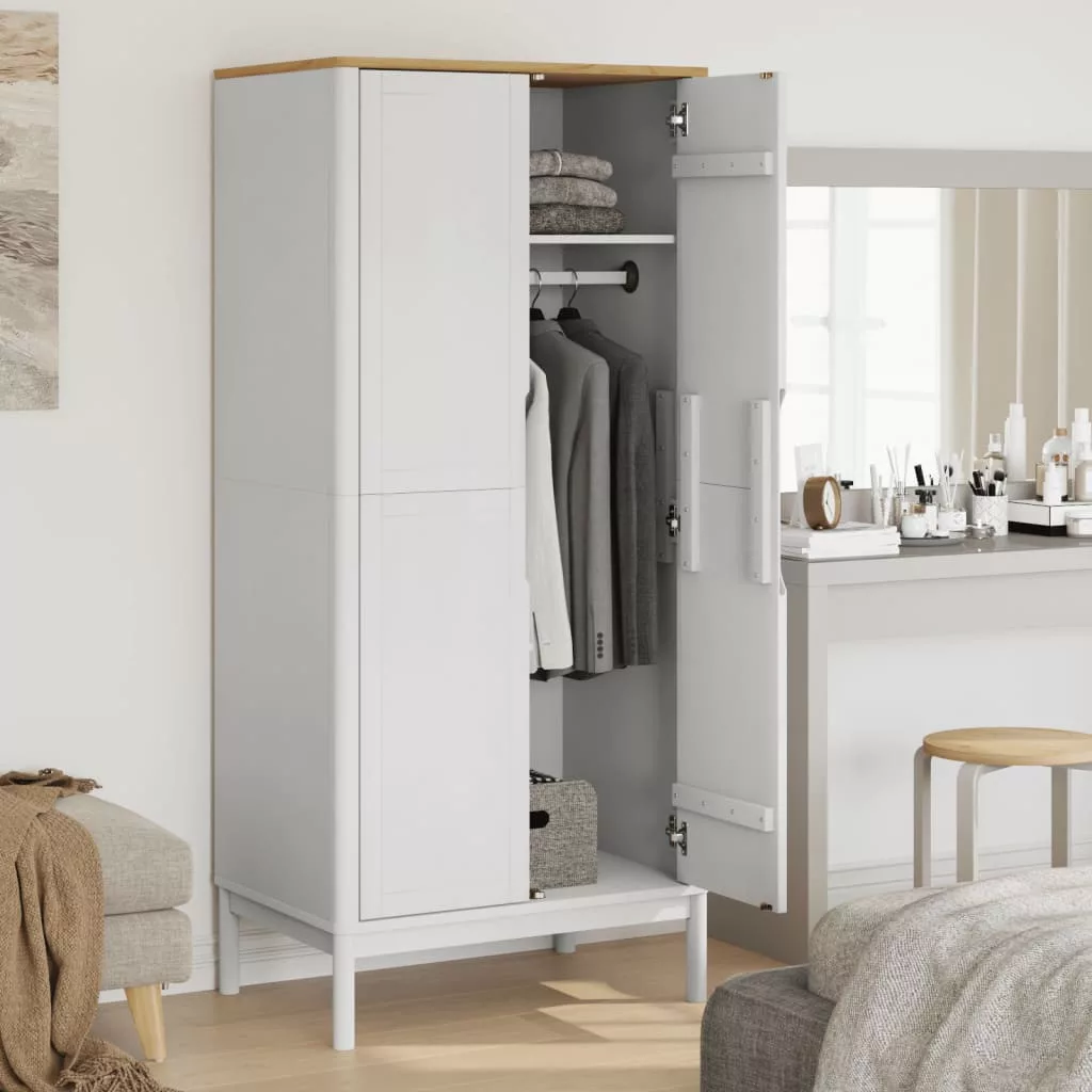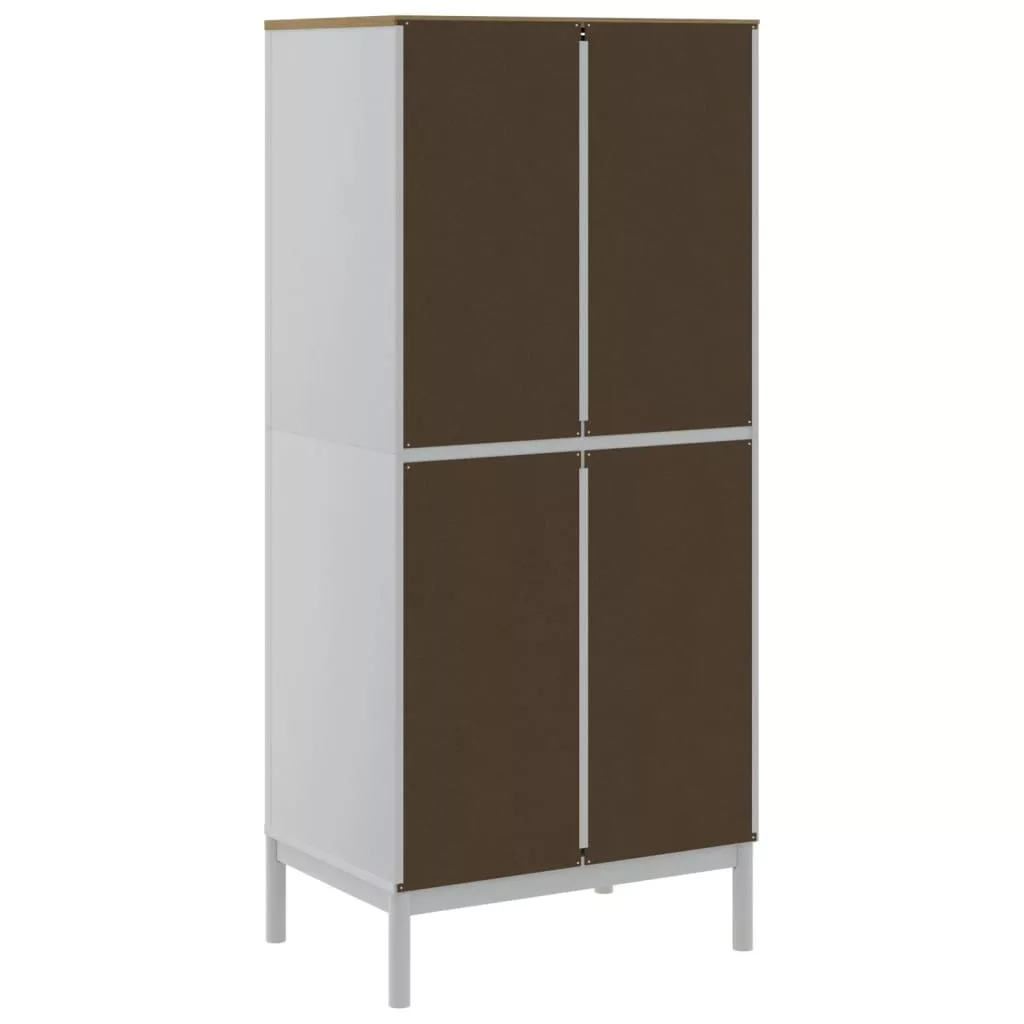 Ez a klasszikus stílusú faszekrény bőséges tárolóhelyet biztosít ruhái, cipői és kiegészítői rendezett tárolásához.