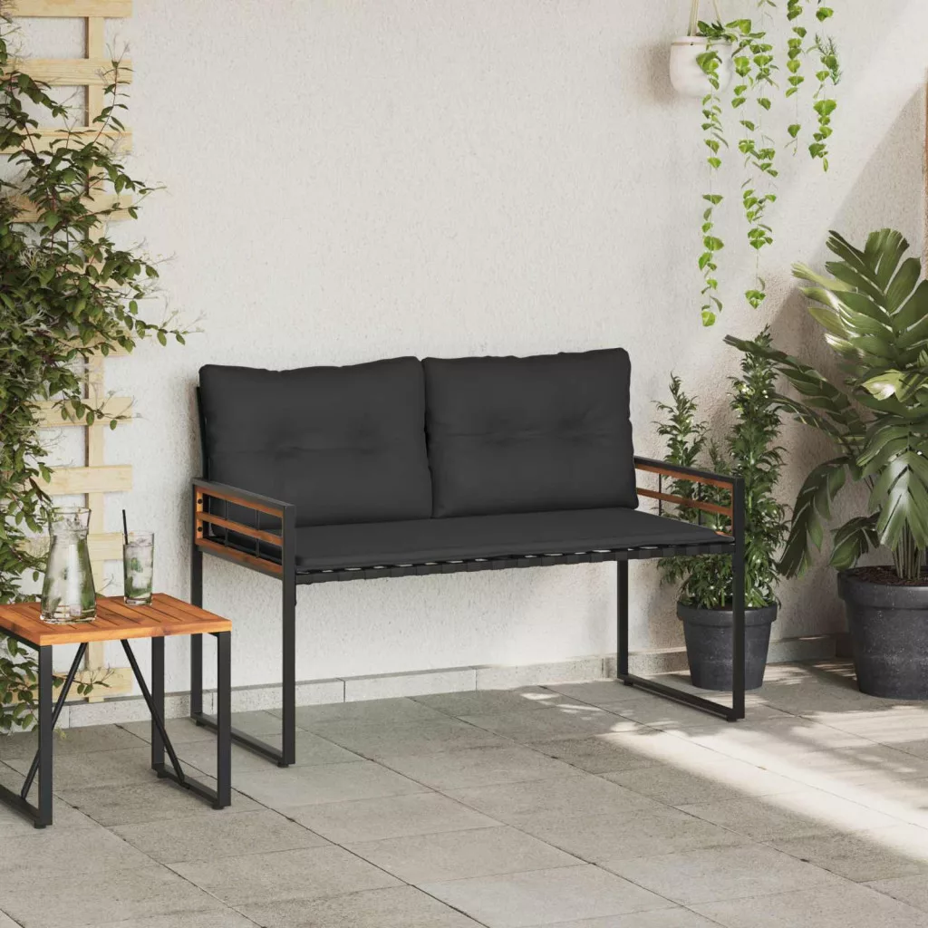 - Fő anyag: Erős tömör akácfa és porszórt acél keverékével készült, ez a pad remekül ötvözi a tartósságot és az esztétikát. A természetes fa jól bírja az időjárást, a porszórt acél pedig hosszú élettartamot és vonzóságot biztosít.