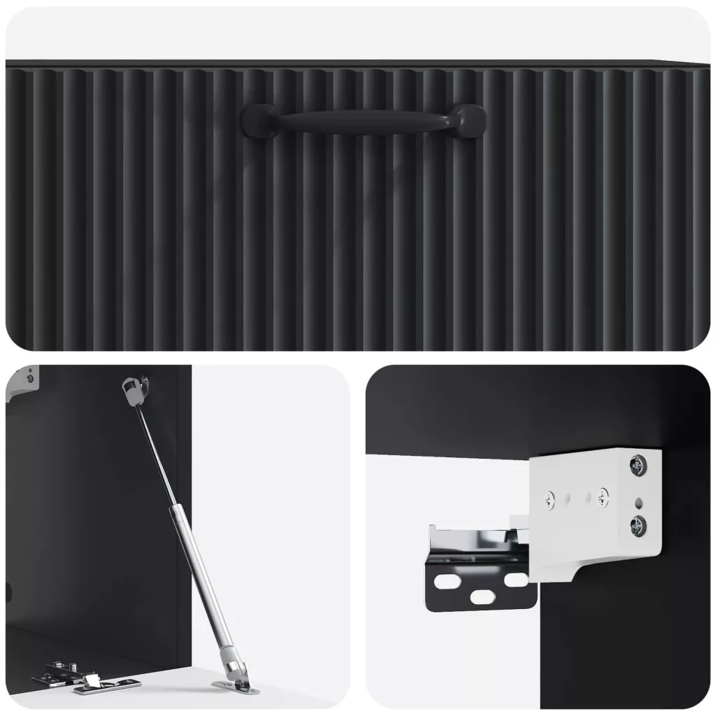 - Funkcionális 90°-os ajtók: A szekrény praktikus 90°-os lengőpántos ajtókkal van ellátva, amik könnyen hozzáférhetővé teszik a tárolt dolgokat. Az ajtók könnyen használhatók, miközben megőrzik a letisztult megjelenést.