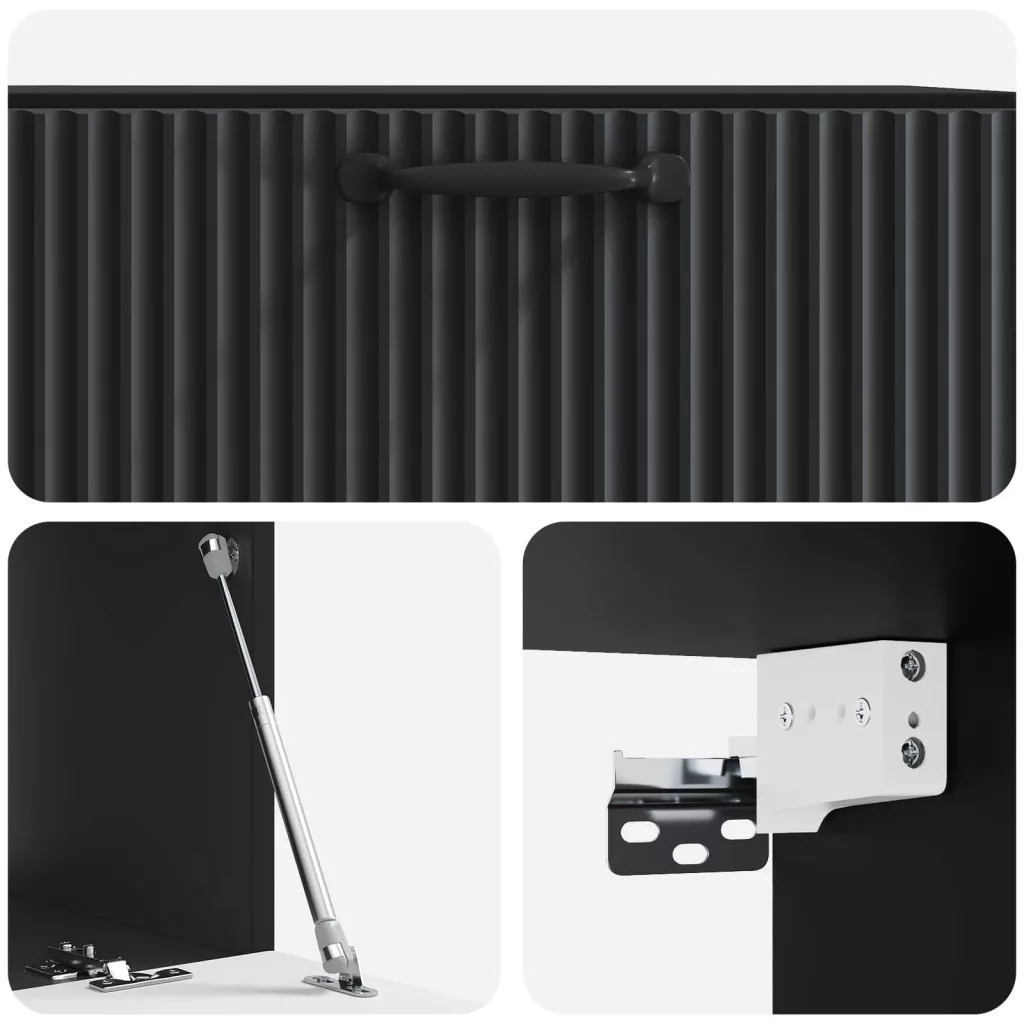 - Funkcionális 90°-os ajtók: A szekrény praktikus 90°-os lengőpántos ajtókkal van ellátva, amik könnyen hozzáférhetővé teszik a tárolt dolgokat. Az ajtók könnyen használhatók, miközben megőrzik a letisztult megjelenést.