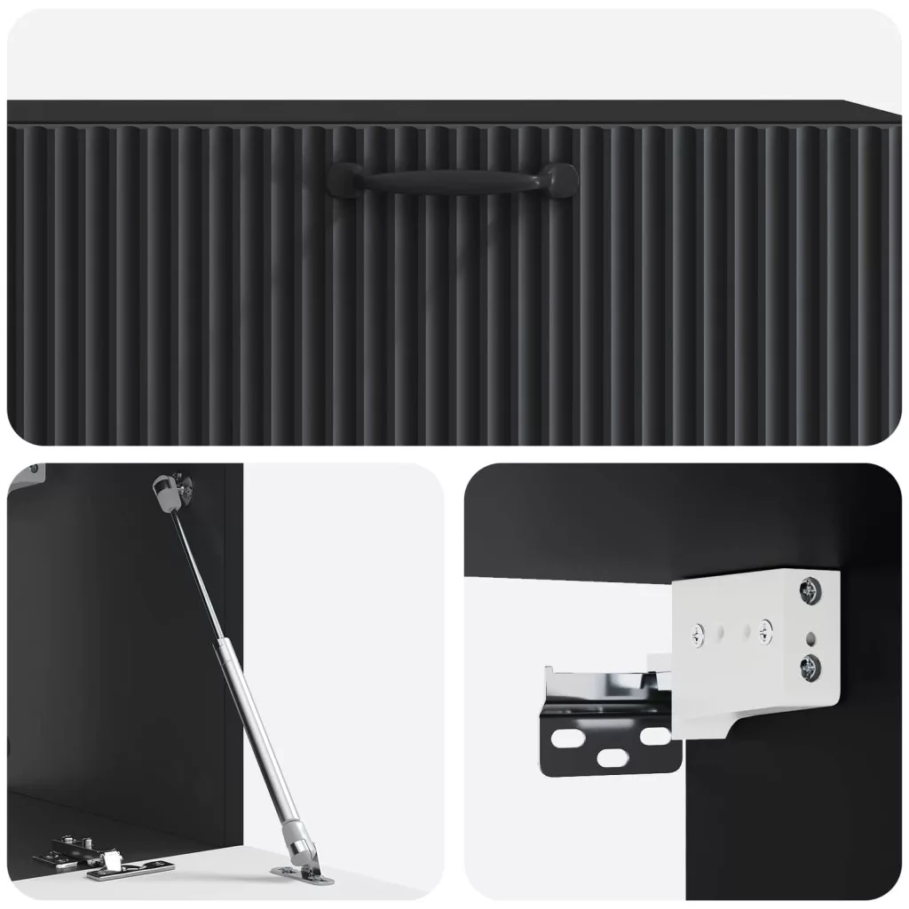 - Stílusos fekete fogantyúk: Minden ajtón elegáns fekete rúdfogantyú van, ami modern érzetet ad a szekrénynek. Ezek nemcsak a szekrény kinézetét javítják, hanem a funkcióját is elősegítik.