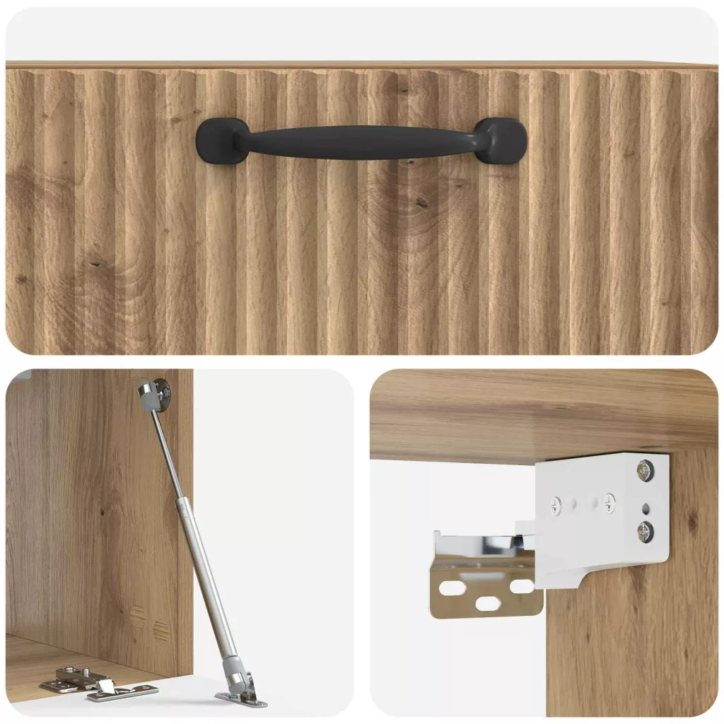 - Funkcionális 90°-os ajtók: A szekrény praktikus 90°-os lengőpántos ajtókkal van ellátva, amik könnyen hozzáférhetővé teszik a tárolt dolgokat. Az ajtók könnyen használhatók, miközben megőrzik a letisztult megjelenést.