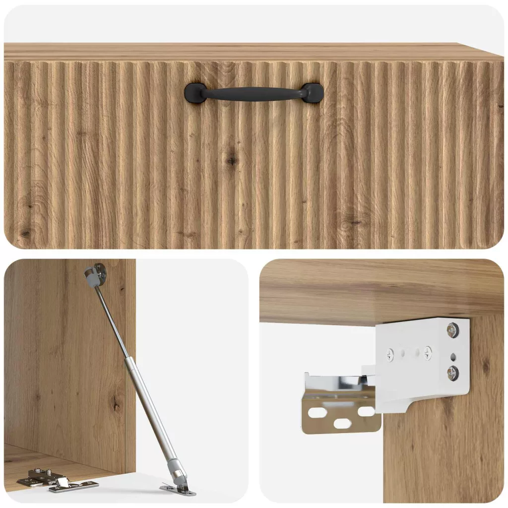 - Funkcionális 90°-os ajtók: A szekrény praktikus 90°-os lengőpántos ajtókkal van ellátva, amik könnyen hozzáférhetővé teszik a tárolt dolgokat. Az ajtók könnyen használhatók, miközben megőrzik a letisztult megjelenést.