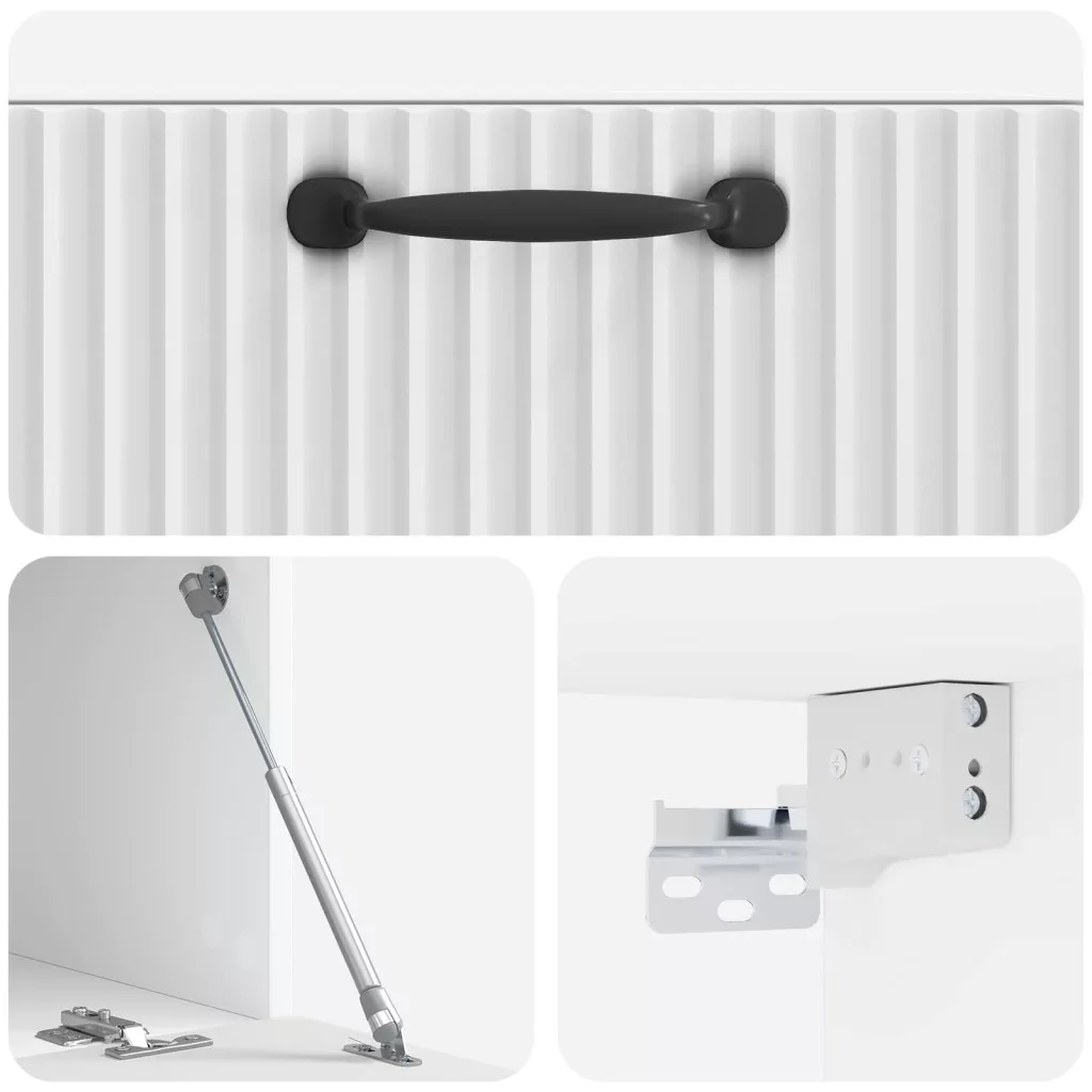 - Funkcionális 90°-os ajtók: A szekrény praktikus 90°-os lengőpántos ajtókkal van ellátva, amik könnyen hozzáférhetővé teszik a tárolt dolgokat. Az ajtók könnyen használhatók, miközben megőrzik a letisztult megjelenést.