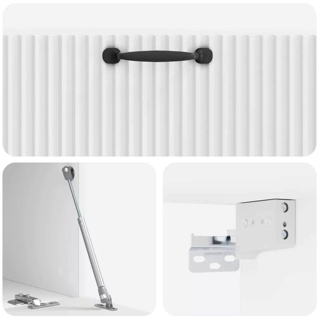 - Funkcionális 90°-os ajtók: A szekrény praktikus 90°-os lengőpántos ajtókkal van ellátva, amik könnyen hozzáférhetővé teszik a tárolt dolgokat. Az ajtók könnyen használhatók, miközben megőrzik a letisztult megjelenést.