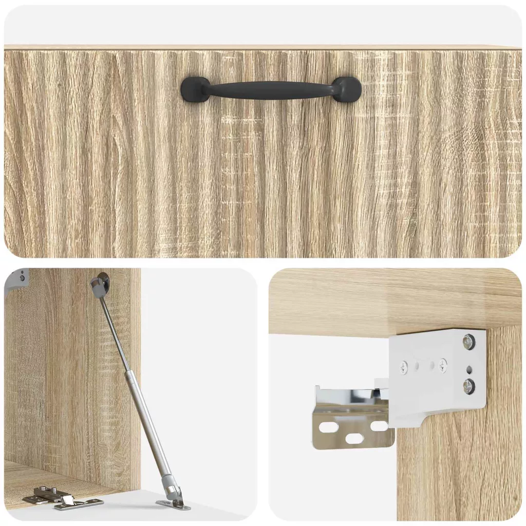 - Funkcionális 90°-os ajtók: A szekrény praktikus 90°-os lengőpántos ajtókkal van ellátva, amik könnyen hozzáférhetővé teszik a tárolt dolgokat. Az ajtók könnyen használhatók, miközben megőrzik a letisztult megjelenést.
