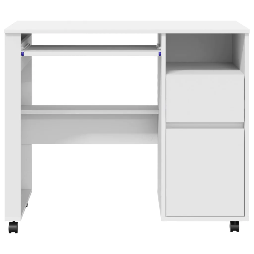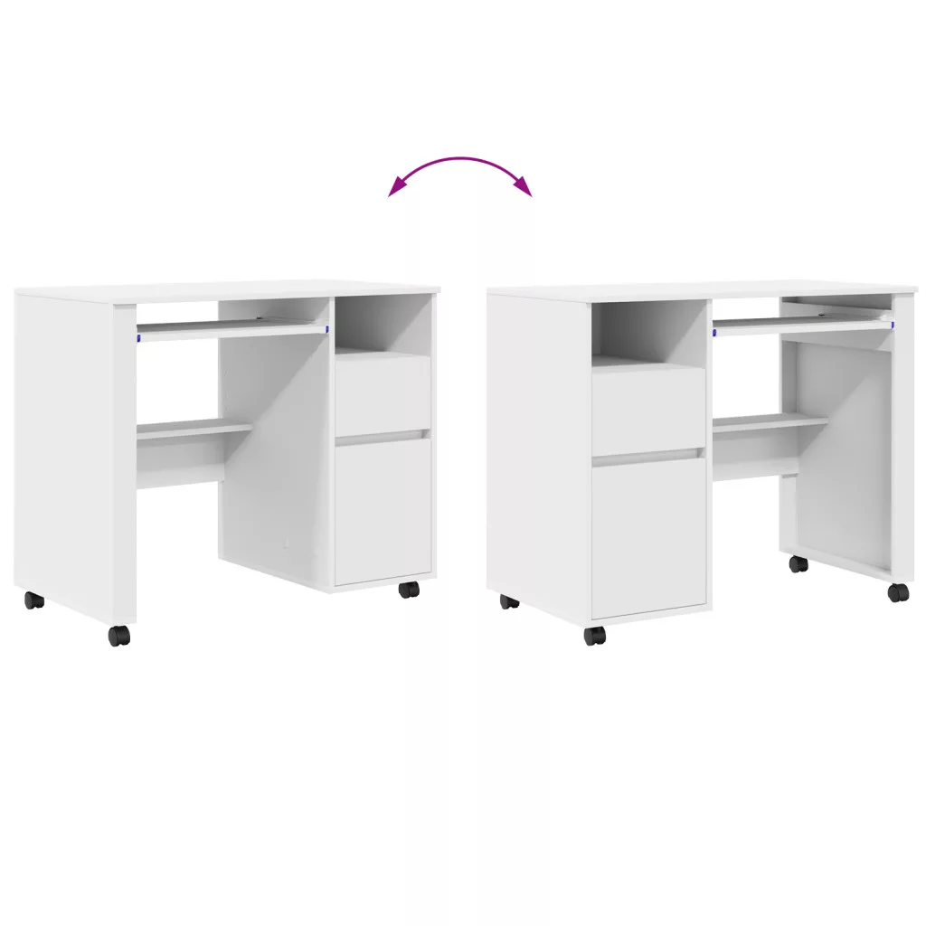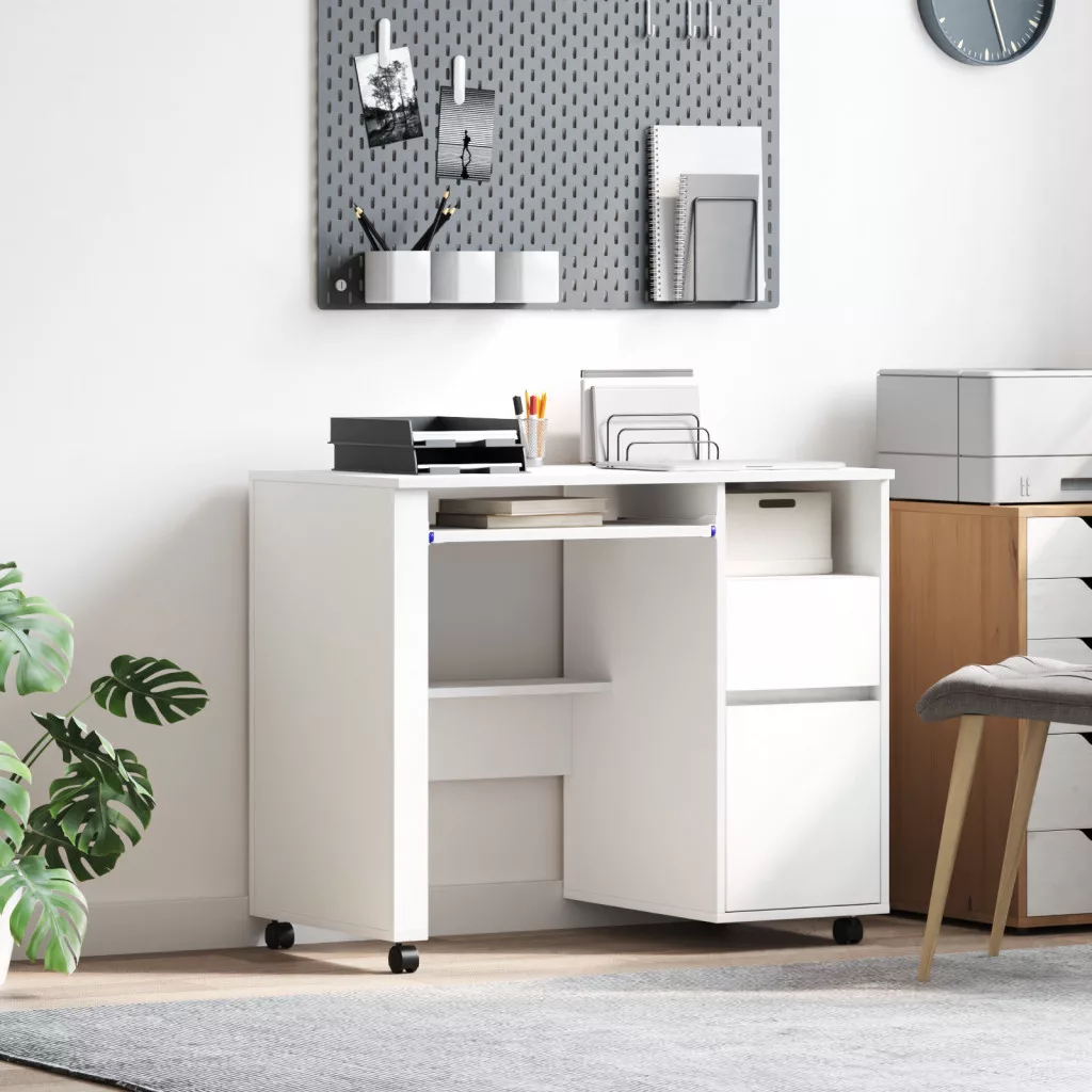 Ez a 'modern számítógépes asztal kerekeken'bármely modern otthoni iroda remek kiegészítője. A letisztult, modern dizájnja követi a trendeket, így stílusos és funkcionális munkateret kínál. Téglalap formája és texturált megjelenése könnyen passzol különböző szobastílusokhoz, mindkét hasznosságát és szépségét nyújtva. Az asztal számítógép használatra készült, és van benne hely a fontos munkakellékek rendszerezésére is.