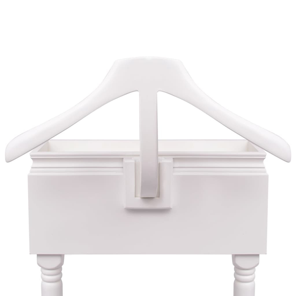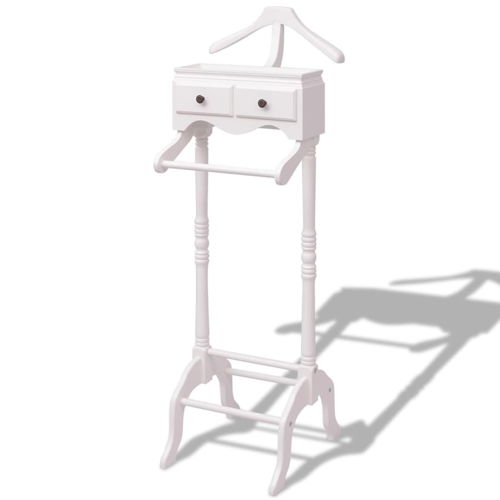 Magas minőségű anyagokból készült masszív állvány, tartós, és könnyű tisztítani. Egy felső és egy alsó fogassal bőséges helyet kínál öltönyöknek, ruháknak, nadrágoknak és egyéb öltözékeknek. Két fiókkal is rendelkezik, amelyek ideálisak nyakkendők, zoknik, ékszerek tárolására.