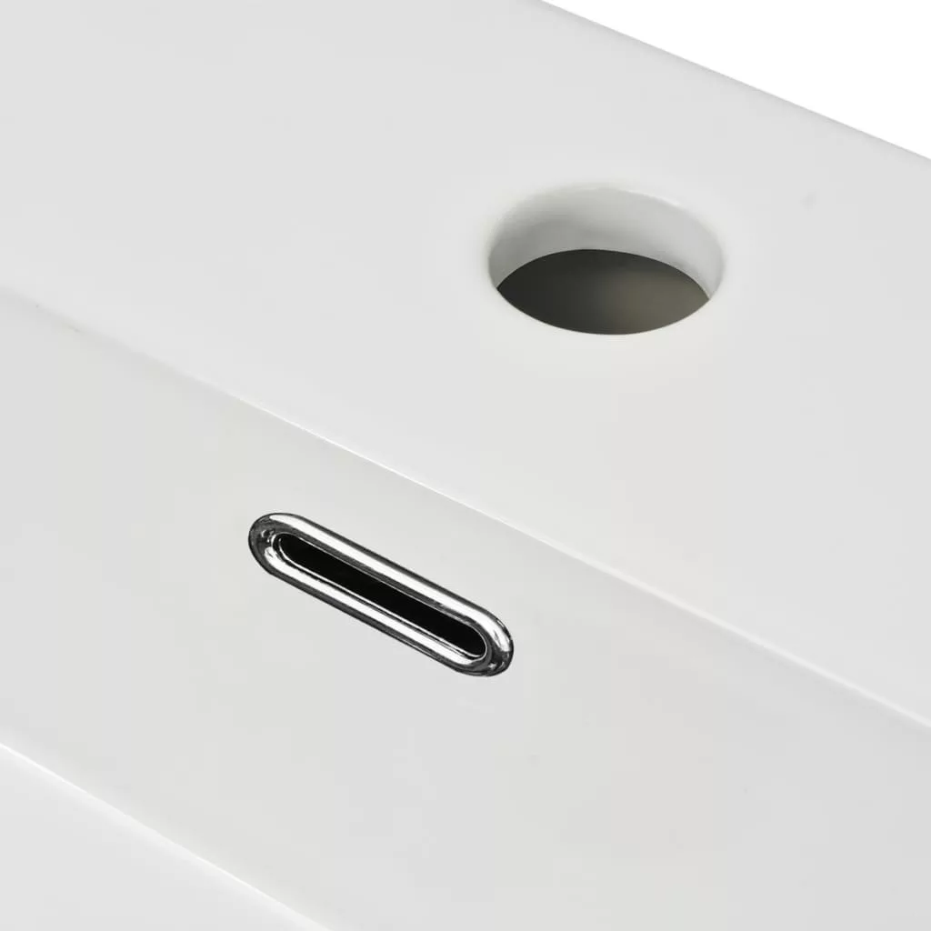 Túlfolyóval is el lett látva a kiömlés meggátolására. 3,7-3,8 cm-es furat lett kialakítva a csap számára. A lefolyó 4,5 cm-es átmérőjű. Kérjük, vegye figyelembe, hogy a csaptelep és a lefolyó nem tartozék.