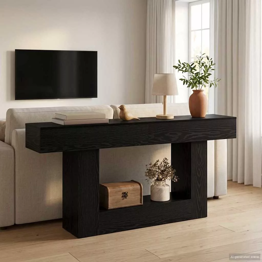 - Modern esztétika: A konzolasztal minimalista dizájnja könnyedén beleillik a mai otthonokba. Visszafogott eleganciája vonzó középpontot teremt a bejáratokban, nappalikban vagy akár étkezőkben.