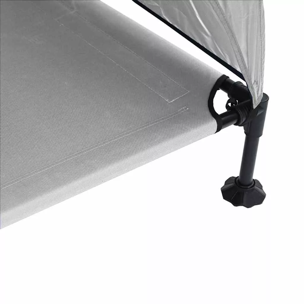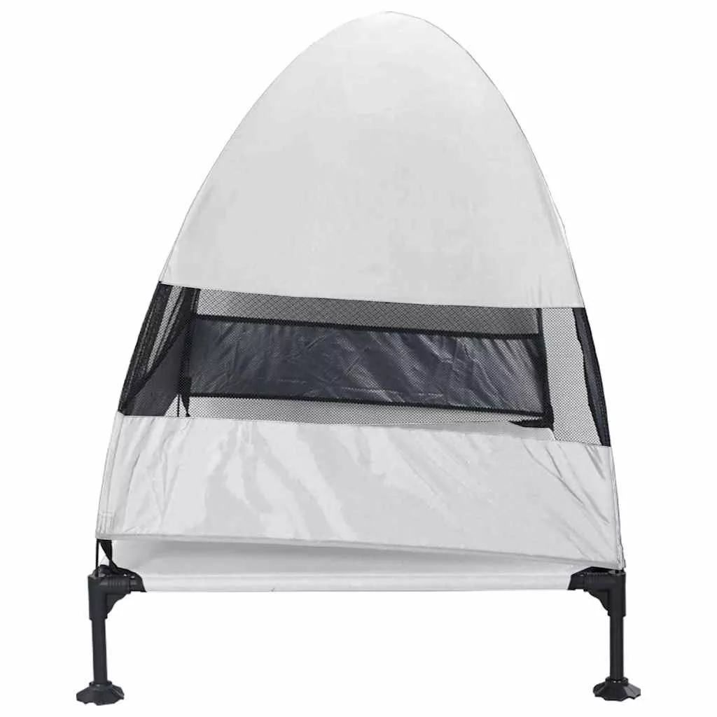 - Anyagok: Igen erős acélvázzal és poliészter szövettel készült, ez a kutyafekhely bírja az időjárást. Az anyag nemcsak strapabíró, de szép is, jól egyensúlyban tartva a forma és a funkciót. A szövet légáteresztő, így kényelmes pihenést kínál, tökéletes bármely évszakban.