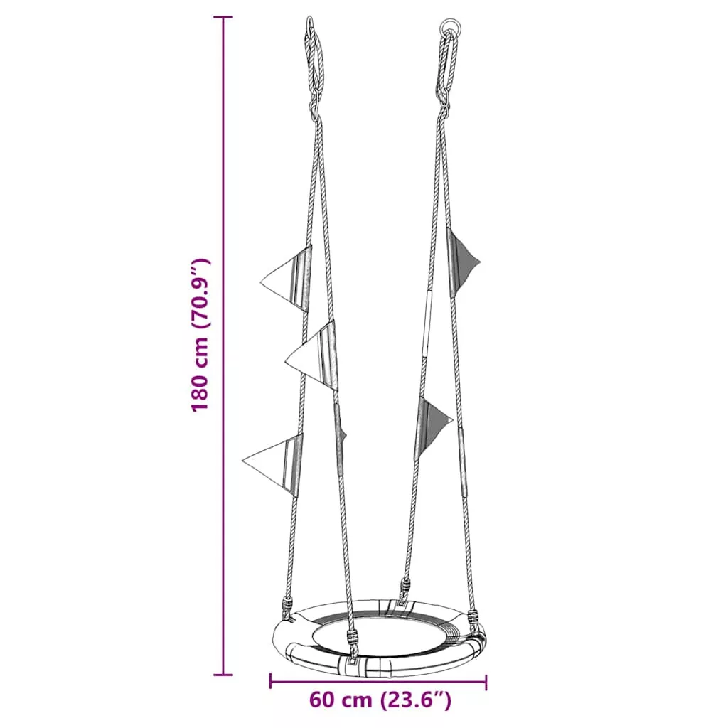 Ez a szivárványzászlókkal díszített fészekhinta színes és tartós dizájnnal rendelkezik, ami tökéletes középpontja lehet a kültéri játékoknak. Modern, letisztult stílusa üdítő kiegészítője a kerteknek és teraszoknak. Arra hívja a gyerekeket, hogy élvezzék a napsütést, és bőséges helyet nyújt a közös játékhoz.